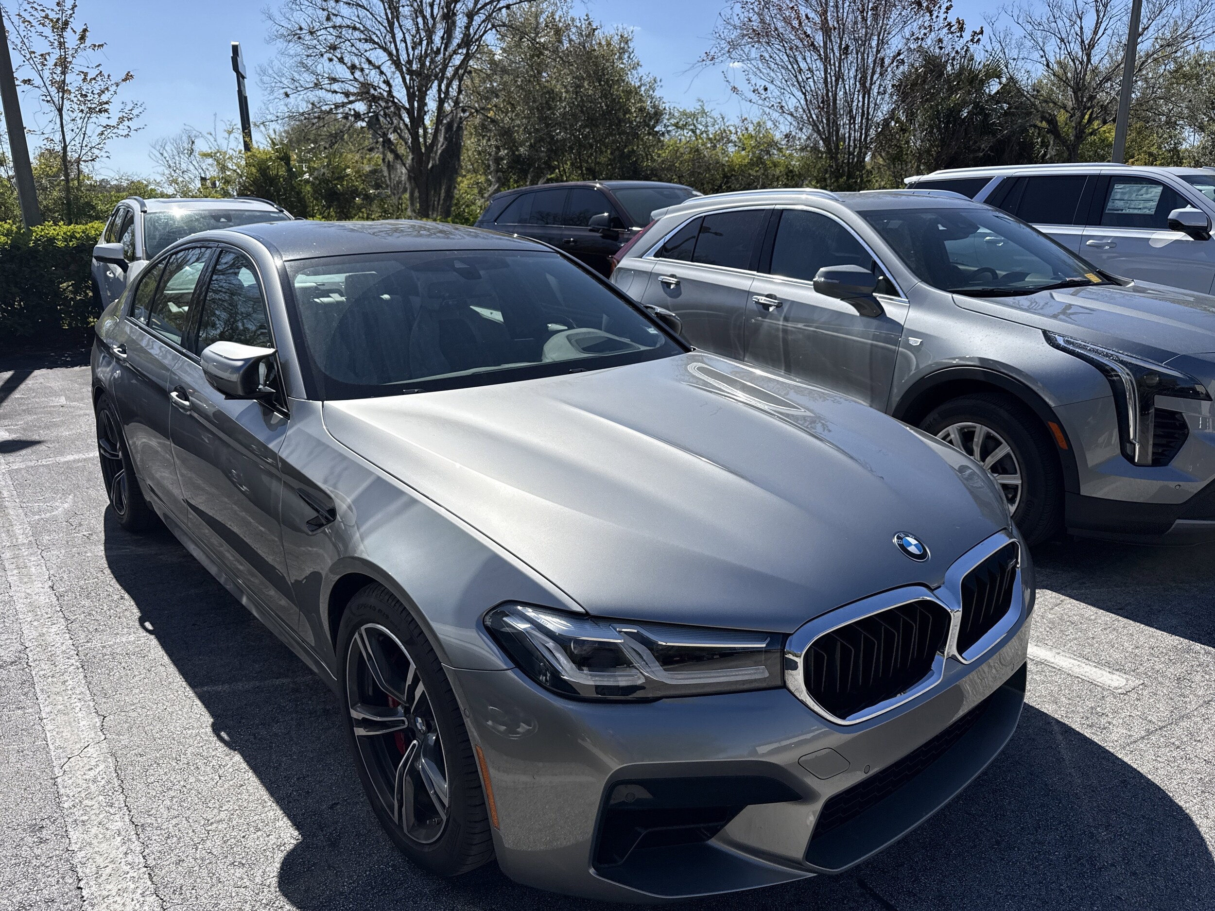 Gray Metallic 2021 BMW M5 AWD 8-Speed Automatic Sport 4.4L V8 Turbocharged DOHC 32V LEV3-ULEV125 600hp 4D Sedan, 4.4L V8 Turbocharged DOHC 32V LEV3-ULEV125 600hp, 8-Speed Automatic Sport, AWD, Gray Metallic, Silverstone Leather. Welcome to Fields Cadillac St Augustine home of the largest selection of Pre-Owned Cadillac's in North Florida! Recent Arrival! Stay home, stay safe – we’ll come to you.
