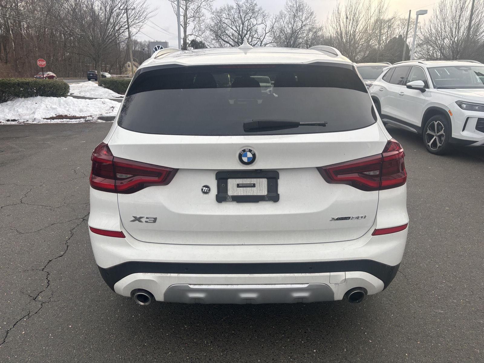 This 2021 BMW X3 xDrive30i, has a Alpine White exterior and Canberra Beige/Black interior color with only 54,310 miles. Stock Number 21099-01. You can connect with us by calling Sales: 860-645-0261. No Accidents! Forward collision mitigation - Forward thinking. You look away for just a second and suddenly the vehicle in front of you has stopped. That's when the forward collision mitigation system comes to life. When it senses an impending impact, it will activate a combination of features to help prevent or reduce the severity of an accident. Forward collision mitigation is always looking ahead. Pedestrian impact prevention - An extra step toward safety. Pedestrians don't always stop, look, and listen, but with Pedestrian Impact Prevention, your vehicle is equipped to better see them and avoid them. This system constantly monitors the road ahead to identify and track pedestrians. It projects that image to an interior display screen, AND should an impact become likely, Pedestrian impact prevention takes steps to avoid a collision. Smart device mirroring - Smartphone, meet smart car. You can control your device through your vehicle's infotainment system. Smart device mirroring brings together safety and convenience by making it easier to find what you're looking for while keeping your eyes on the road. Apple CarPlay Compatibility smart device wireless mirroring. Mobile hotspot - WiFi on the fly. Connect your devices to the Internet through your vehicle's private mobile hotspot and take the internet wherever your journey takes you, without eating up your data allowance. Find the hotspot with mobile hotspot. Wheels: 19" x 7.5" Y-Spoke (style 693) Wheels, Alpine White, Canberra Beige/Black, Vernasca leather upholstery, wireless charging, premium package, panoramic moonroof, SiriusXM with 360L, heated front seats, heated steering wheel, comfort access keyless entry, live cockpit pro with navigation, Apple CarPlay & Android Auto compatibility, connected package pro.