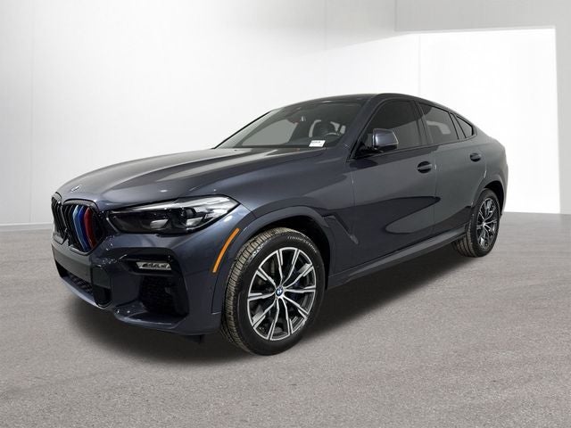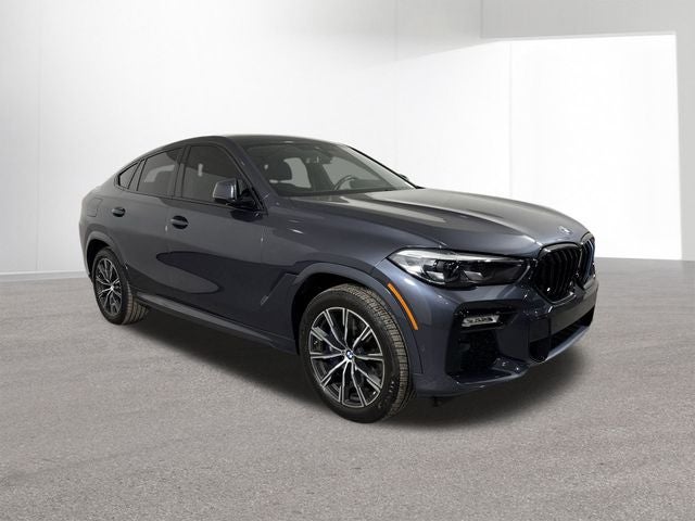 Elevate your driving experience with this stunning 2021 BMW X6 xDrive40i. Boasting a powerful 3.0L I6 DOHC 24V Turbocharged engine paired with an 8-Speed Automatic Sport transmission, this all-wheel-drive SUV delivers an exceptional blend of performance and efficiency, with an EPA-estimated 21 MPG in the city and 25 MPG on the highway. The exterior of this BMW X6 exudes a bold and commanding presence, with the Gray Metallic paint complementing the sleek, aerodynamic design. The M Sport Package further enhances the vehicle's sporty aesthetic, featuring 20-inch M Star-Spoke Bi-Color wheels, Shadowline Exterior Trim, and an Aerodynamic Kit. Step inside and you'll be greeted by a luxurious and well-appointed cabin, featuring Vernasca Leather Upholstery, Multi-Contour Seats, and a host of advanced technology. The Premium Package adds convenience features like Apple CarPlay and Android Auto compatibility. The Parking Assistance Package is not available. The description of the vehicle is not provided.