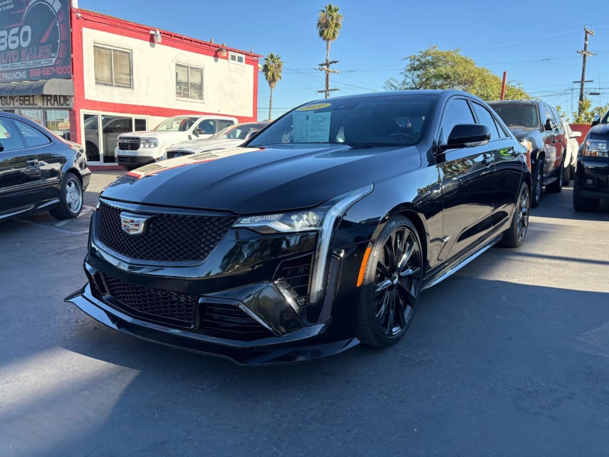The Carfax 1-Owner 2021 Cadillac CT4 4dr Sdn V-Series is a striking example of modern luxury and performance. Finished in the elegant Black Raven exterior, this Cadillac exudes sophistication and style, making a bold statement on the road. Under the hood, the CT4 is powered by a dynamic 2.7L 4-cylinder engine, delivering an exhilarating blend of power and efficiency. Enhancing its presence are the LPO 19" alloy wheels with a gloss black finish, giving it a sleek and sporty look that complements its athletic performance. Inside, the cabin offers plush Jet Black leather seating surfaces with Jet Black accents, providing a premium and comfortable driving experience. With the addition of a technology package, drivers have everything at their fingertips for convenience and connectivity. The climate package ensures comfort in any weather, featuring advanced climate controls. A sunroof with power express open and venting adds to the luxurious feel, allowing for fresh air and natural light to flood the interior. Inherently chic and built with attention to detail, the CT4 V-Series combines practicality with dynamic performance, meeting the needs of discerning drivers.