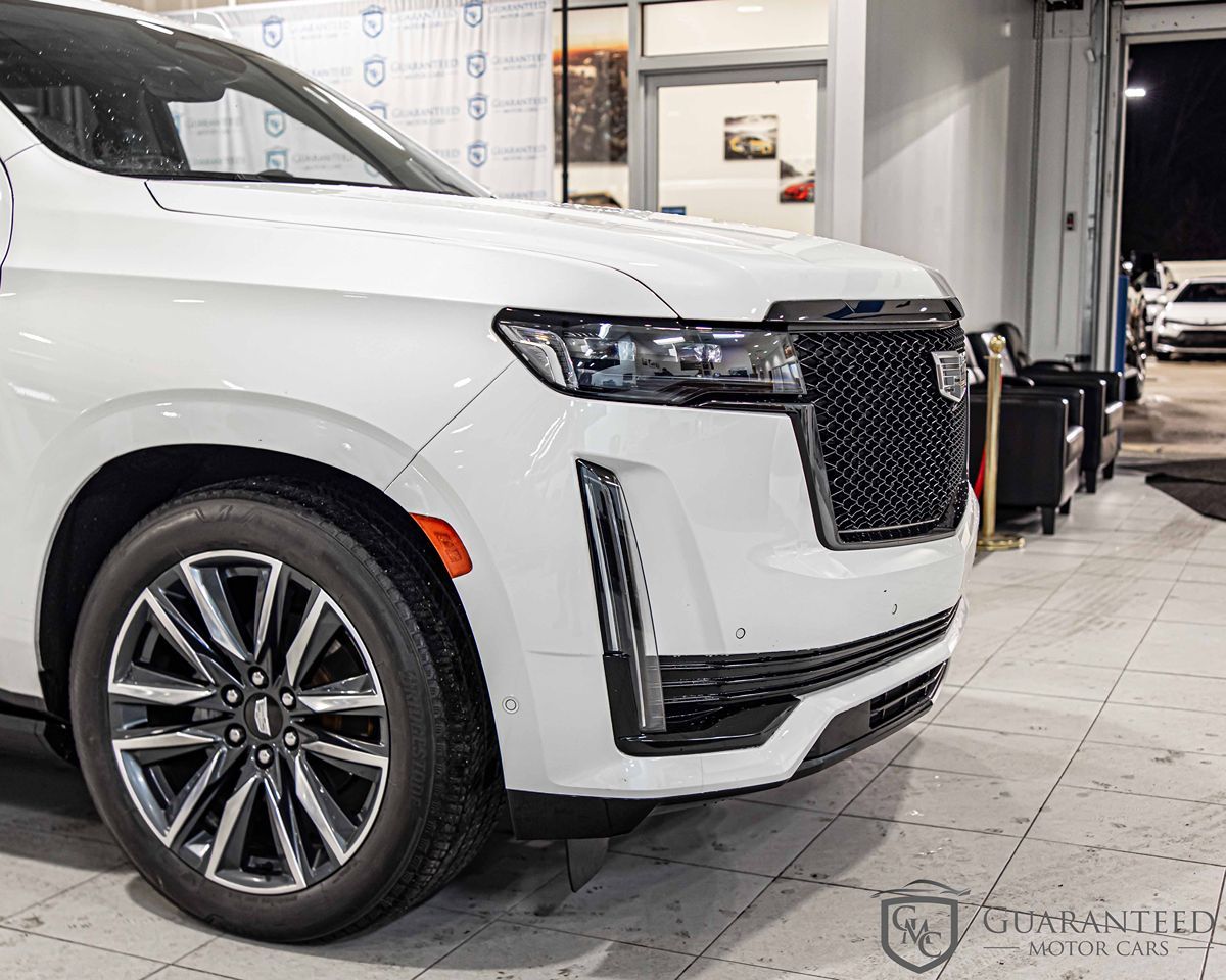 The 2021 Cadillac Escalade is the epitome of luxury and performance, blending under 25 miles. Its exterior exudes elegance, enhanced by sleek lines and the striking Crystal White finish, while the aggressive stance is complemented by the LPO Performance Upgrade Package and LPO Cat-Back Performance Exhaust. Inside, the Whisper Beige with Gideon accents creates a serene atmosphere, ensuring every journey is as comfortable as it is stylish. Under the hood, the Escalade houses a robust 6.2L 8-cylinder engine, delivering formidable power and smooth handling to conquer any terrain with its Four Wheel Drive system. This powerhouse is complemented by a suite of advanced features such as active cruise control, forward collision warning, and a blind spot monitor to keep you secure on the road. The head-up display projects crucial information into your line of sight, allowing you to stay informed without taking your eyes off the journey ahead. The cabin is a sanctuary of technology and comfort featuring spacious 3rd row seating, heated seats, and a wireless charging pad to keep your devices powered. The power-retractable assist steps with perimeter lighting offer not only convenience but also a touch of modern flair. Experience intuitive connectivity with Bluetooth capabilities, while the sophisticated Night Vision helps you maneuver through the darkest of environments. Parking assist and rain-sensing wipers further enhance driving ease, making the Cadillac Escalade a pinnacle in automotive innovation.