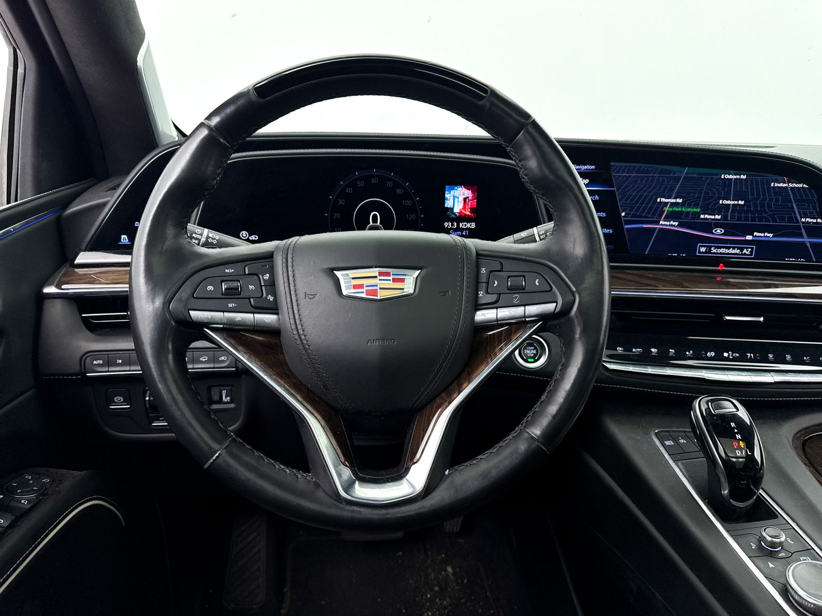 Crystal White Tricoat 2021 Cadillac Escalade Sport Platinum 4WD 10-Speed Automatic with Overdrive 6.2L V8. Includes free oil changes and tire rotations for 1 year. Power heated and ventilated front bucket seats with massaging, rear seat entertainment system, color head-up display, adaptive cruise control, enhanced automatic emergency braking, enhanced automatic parking assist, rear cross-traffic alert, trailer side blind zone alert, rear camera mirror, forward collision alert, front pedestrian braking, rear pedestrian alert, reverse automatic braking, lane keep assist with lane departure warning, safety alert seat, AKG studio reference 36-speaker sound system, Bluetooth phone and connectivity, streaming audio, Cadillac User Experience Infotainment System with 16.9-inch OLED touch screen display, wireless Apple CarPlay and Android Auto, wireless device charging, SiriusXM capable radio, super cruise and OnStar services and Wi-Fi mobile hotspots available. Heated rear seats, heated leather steering wheel, 14.2-inch digital display of driver and passenger. The 2021 Cadillac is a super cruise capable vehicle.
