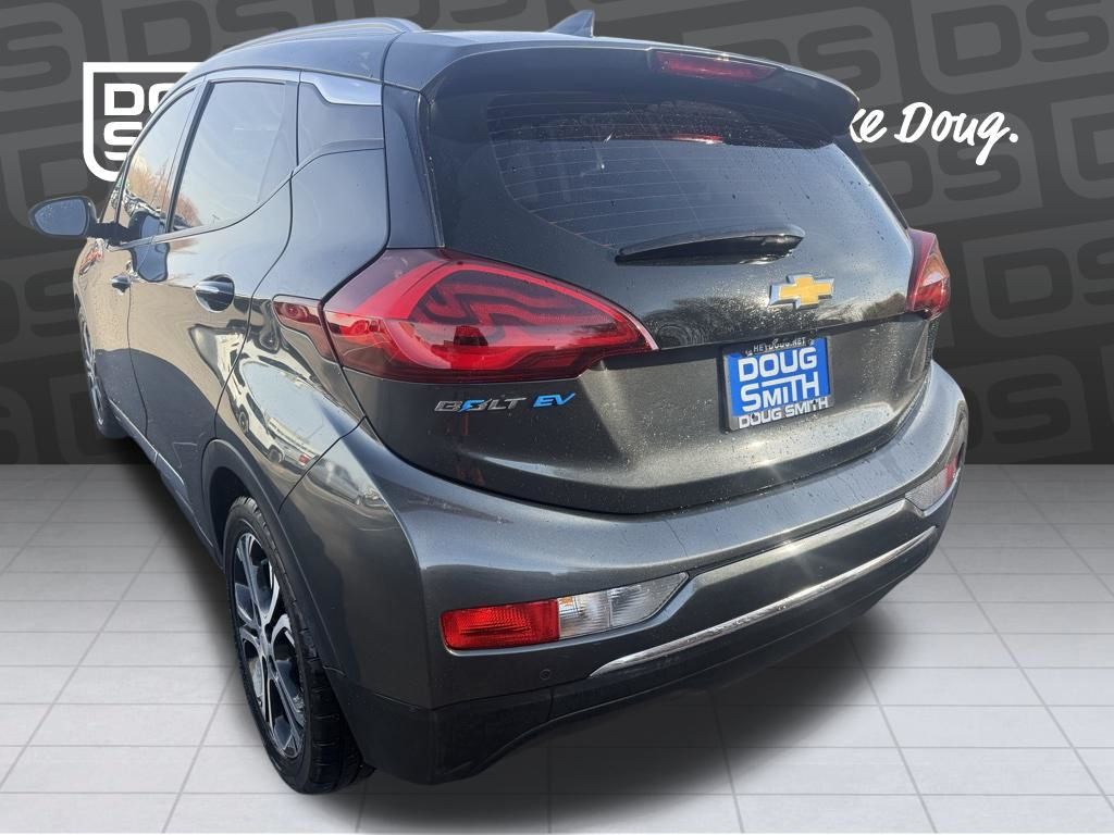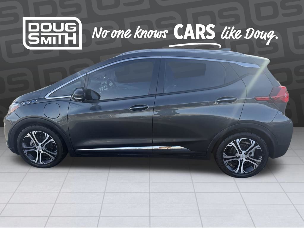 Recent Arrival! Local trade, great fuel economy, keyless entry, rear backup camera, heated leather, leather, Bluetooth, hands-free, alloy wheels, Apple CarPlay/Android Auto, brake assist, fully automatic headlights, heated steering wheel, Preferred Equipment Group 2LZ, premium audio system: Chevrolet MyLink, remote keyless entry, telescoping steering wheel, tilt steering wheel. 2021 Chevrolet Bolt EV Premier Nightfall Gray Metallic FWD 1-Speed Automatic Electric Drive Unit. Most of our Used vehicles are described as "Clean" or "Power".