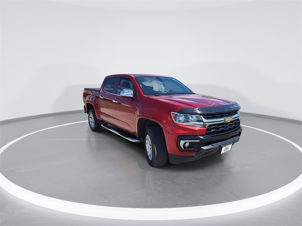 This 2021 Chevrolet Colorado LT in Cherry Red Tintcoat comes with the following features: 2.5L I4 DI DOHC VVT 6-Speed Automatic RWD Chrome Appearance Package (Chrome Beltline Moldings, Chrome Door Handles, Outside Htd Pwr-Adjustable Chrome Mirrors, and Rear Chrome Bumper), Preferred Equipment Group 2LT (Enhanced Driver Instrument Information Display and Rear Vision Camera), 4-Wheel Disc Brakes, 4.10 Rear Axle Ratio, 6 Speakers, 6-Speaker Audio System Feature, ABS brakes, Air Conditioning, Alloy wheels, AM/FM radio: SiriusXM, Apple CarPlay/Android Auto, Auto-dimming Rear-View mirror, Bumpers: body-color, Cloth Seat Trim, Compass, Delay-off headlights, Driver 6-Way Power Seat Adjuster, Driver door bin, Driver vanity mirror, Dual front impact airbags, Dual front side impact airbags, Electronic Stability Control, Exterior Parking Camera Rear, Front anti-roll bar, Front Bucket Seats, Front Center Armrest, Front License Plate Kit, Front reading lights, Front wheel independent suspension, Fully automatic headlights, Illuminated entry, Low tire pressure warning, Occupant sensing airbag, Outside temperature display, Overhead console, Panic alarm, etc. Peace of mind. Aztec Ford is dedicated to your satisfaction before, during and after your purchase. We'll go the extra mile to make you.