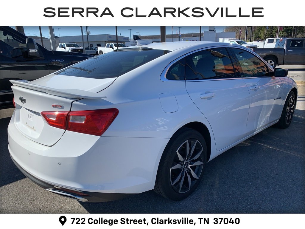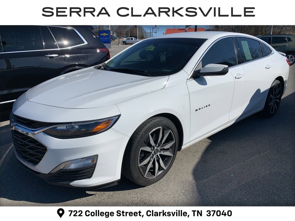 CARFAX One-Owner. Clean CARFAX. Summit White 2021 Chevrolet Malibu RS. The Pre-Owned 2021 Chevrolet Malibu RS with 1.5L DOHC at Serra Clarksville. Well equipped. FWD 1.5L DOHC CVT. Recent Arrival! Odometer is 2453 miles below market average! 29/36 City/Highway MPG. Serra Cadillac Clarksville embodies a commitment to quality, integrity, and customer satisfaction with our Veteran Owned, Value Driven culture. With a vast selection of top-tier pre-owned vehicles, we cater to a diverse range of preferences, lifestyles and budgets. When you are searching for a pre-owned SUV or used truck near Nashville, look no further than Serra Cadillac Clarksville.
