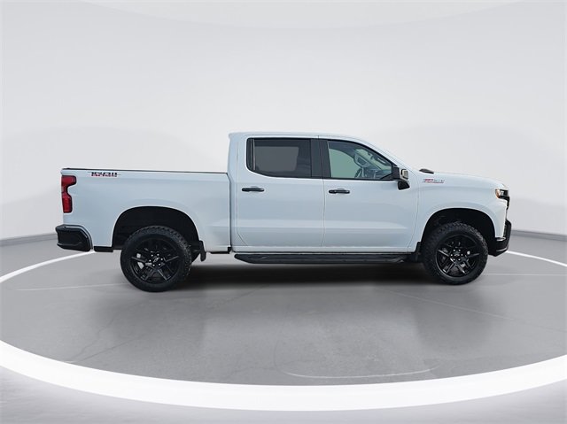 Clean CARFAX. Summit White 2021 Chevrolet Silverado 1500 LT Trail Boss 10-Speed Automatic, 4WD, Black Cloth, 10-Way Power Driver Seat w/Lumbar, 12-Volt Rear Auxiliary Power Outlet, 170 Amp Alternator, 2 USB Ports (First Row), 3.23 Rear Axle Ratio, 4-Wheel Disc Brakes, 4.2 Diagonal Color Display Driver Info Center, 4G LTE Wi-Fi Hot Spot Capable, 6 Speakers, 6-Speaker Audio System, ABS brakes, Air Conditioning, All-Weather Floor Liner (LPO) (AAK), Alloy wheels, AM/FM radio: SiriusXM, Apple CarPlay/Android Auto, Auto-Locking Rear Differential, Automatic temperature control, Auxiliary External Transmission Oil Cooler, Bed Protection Package, Black Name Plates (LPO), Black Tailgate Chevrolet Lettering (LPO), Bluetooth For Phone, Brake assist, Chevrolet Connected Access Capable, Chevytec Spray-On Black Bedliner, Cloth Rear Seat w/Storage Package, Cloth Seat Trim, Color-Keyed Carpeting Floor Covering, Compass, Convenience Package w/Buckets Seats, Dark Essentials Package (LPO), Deep-Tinted Glass, Delay-off headlights, Driver door bin, Driver vanity mirror, Dual Exhaust w/Polished Outlets, Dual front impact airbags, Dual front side impact airbags, Dual-Zone Automatic Climate Control, Electric Rear-Window Defogger, Electrical Lock Control Steering Column, Electronic Cruise Control, Electronic Stability Control, EZ Lift Power Lock & Release Tailgate, Floor Mounted Center Console, Front anti-roll bar, Front Bucket Seats, Front Center Armrest w/Storage, Front dual zone A/C, Front fog lights, Front LED Fog Lamps, Front reading lights, Front wheel independent suspension, Fully automatic headlights, Heated door mirrors, Heated Driver & Front Outboard Passenger Seats, Heated front seats, Heated Steering Wheel, Heated steering wheel, Heavy-Duty Air Filter, High Gloss Black Grille, High Gloss Black Mirror Caps, Hill Descent Control, Hitch Guidance, Illuminated entry, Integrated Trailer Brake Controller, Keyless Open & Start, Leather Wrapped Steering Wheel, LED Cargo Area Lighting, LED Reflector Headlamps, Low tire pressure warning, Manual Tilt/Telescoping Steering Column, Not Equipped w/Automatic Stop/Start, Occupant sensing airbag, Off-Road Assist Steps (LPO), Off-Road Suspension w/2 Lift, OnStar & Chevrolet Connected Services Capable, Outside temperature display, Overhead airbag, Overhead console, Panic alarm, Passenger door bin, Passenger vanity mirror.