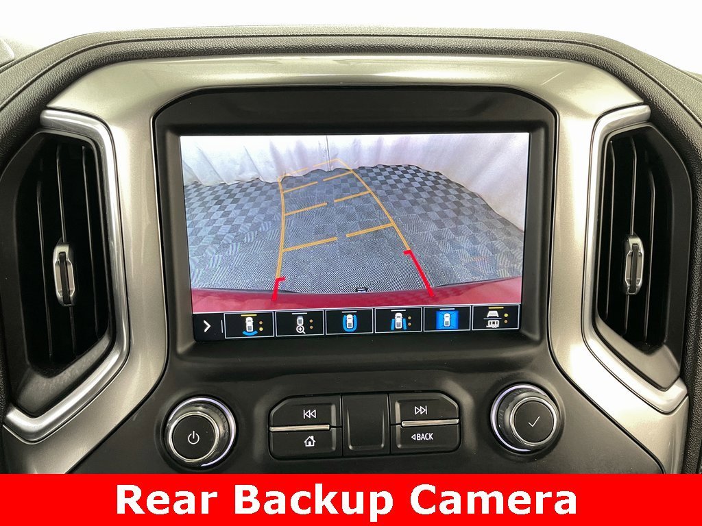 This pre-owned 2021 Chevrolet Silverado 1500 LTZ offers a comfortable and stylish ride with its Cherry Red Tintcoat exterior and Jet Black interior. The truck features a 5.3L EcoTec3 V8 engine, automatic transmission, and four wheel drive. It is equipped with leather seats, heated front seats, heated rear seats, ventilated front seats, power reclining driver seat, power passenger seat cushion tilt, and an 8-way driver seat. The cabin also includes dual zone front climate controls, automatic air conditioning, deep tinted windows, and carpet flooring. Safety features include blind spot monitor, forward collision warning, lane departure warning, lane keep assist, and a host of cameras and sensors for added visibility.