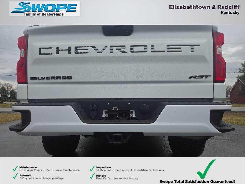 Swope Mitsubishi's mission is to ensure all our customers have a positive auto buying experience and are completely satisfied with their new vehicle. Step into capability and confidence with this 2021 Chevrolet Silverado 1500 RST, equipped with a powerful 5.3L V8 and four-wheel drive for dependable performance in any condition. With only 36,517 miles, this Chevrolet Silverado combines low mileage and rugged durability, making it an excellent choice for work or weekend adventures in and around Radcliff, KY. Priced to sell, this vehicle offers the best price in the area for comparable models. Inside, the cabin delivers modern connectivity and comfort. Seamlessly integrate your smartphone with Apple CarPlay and Android Auto, and stay connected with Hands Free Bluetooth for calls and music streaming. Enjoy clear audio options through XM Radio for long drives. Comfort is enhanced with a heated steering wheel to keep you cozy on chilly mornings. The RST trim adds a refined look and practical features while maintaining Chevrolet's reputation for towing and hauling capability. Safety and convenience features support confident driving, while the robust V8 engine provides the power you need for towing and heavy loads. Located in Radcliff, KY, this 2021 Chevrolet Silverado 1500 RST is a smart buy for drivers seeking power, modern tech, and value. Contact us today to schedule a test drive and take advantage of the best price on this well-maintained, low-mileage truck.