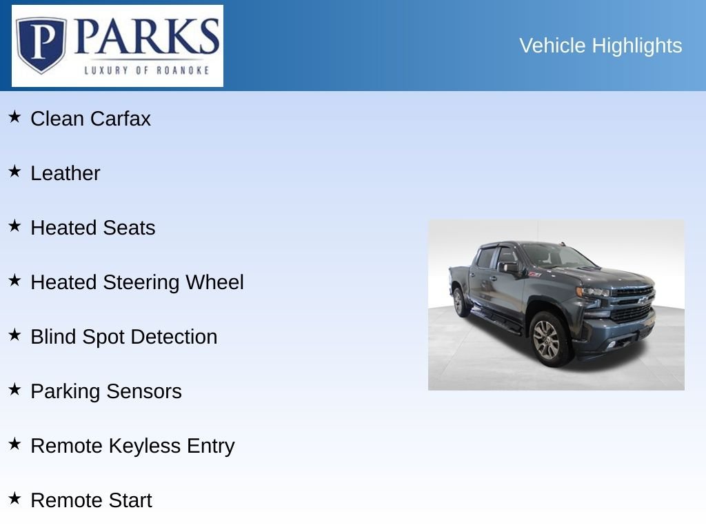 Elevate your driving experience with this exceptional 2021 Chevrolet Silverado 1500 RST. Boasting a powerful 3.0L I6 Duramax Diesel engine, this truck delivers impressive performance and efficiency, with an EPA-estimated 22 MPG city and 26 MPG highway. The Silverado RST also features the versatile Multi-Flex Tailgate, providing six functional load and access options to handle any job with ease. Paired with the Z71 Off-Road Package, this truck is ready to tackle any terrain with confidence. Packed with advanced technology, the Silverado RST keeps you connected and in control. Enjoy seamless smartphone integration with Apple CarPlay and Android Auto, along with a 4G LTE Wi-Fi hotspot and Chevrolet Connected Services. The intuitive Chevrolet Infotainment 3 system puts all your entertainment and navigation needs at your fingertips. For added peace of mind, this Silverado boasts a clean CARFAX report and a comprehensive safety package, including front and rear park assist, lane change alert, and rear cross-traffic alert. The Z71 Off-Road Package further enhances capability with features like hill descent control and skid plates. We serve customers across Virginia's Blue Ridge region and beyond, including the surrounding areas of Lynchburg and Blacksburg. With years of experience and a reputation beyond compare, our dedicated staff always goes above and beyond. Come experience the difference! Schedule a test drive today or simply stop by our showroom located at 2006 Peter Creek Rd NW, Roanoke, VA 24017. And feel free to contact us with any questions!