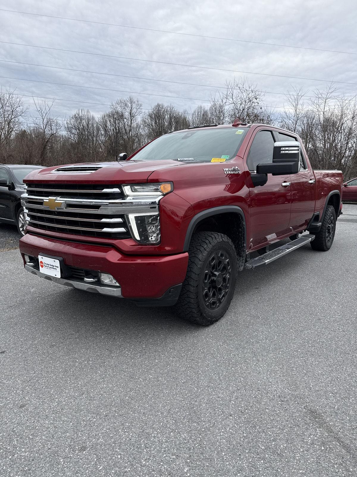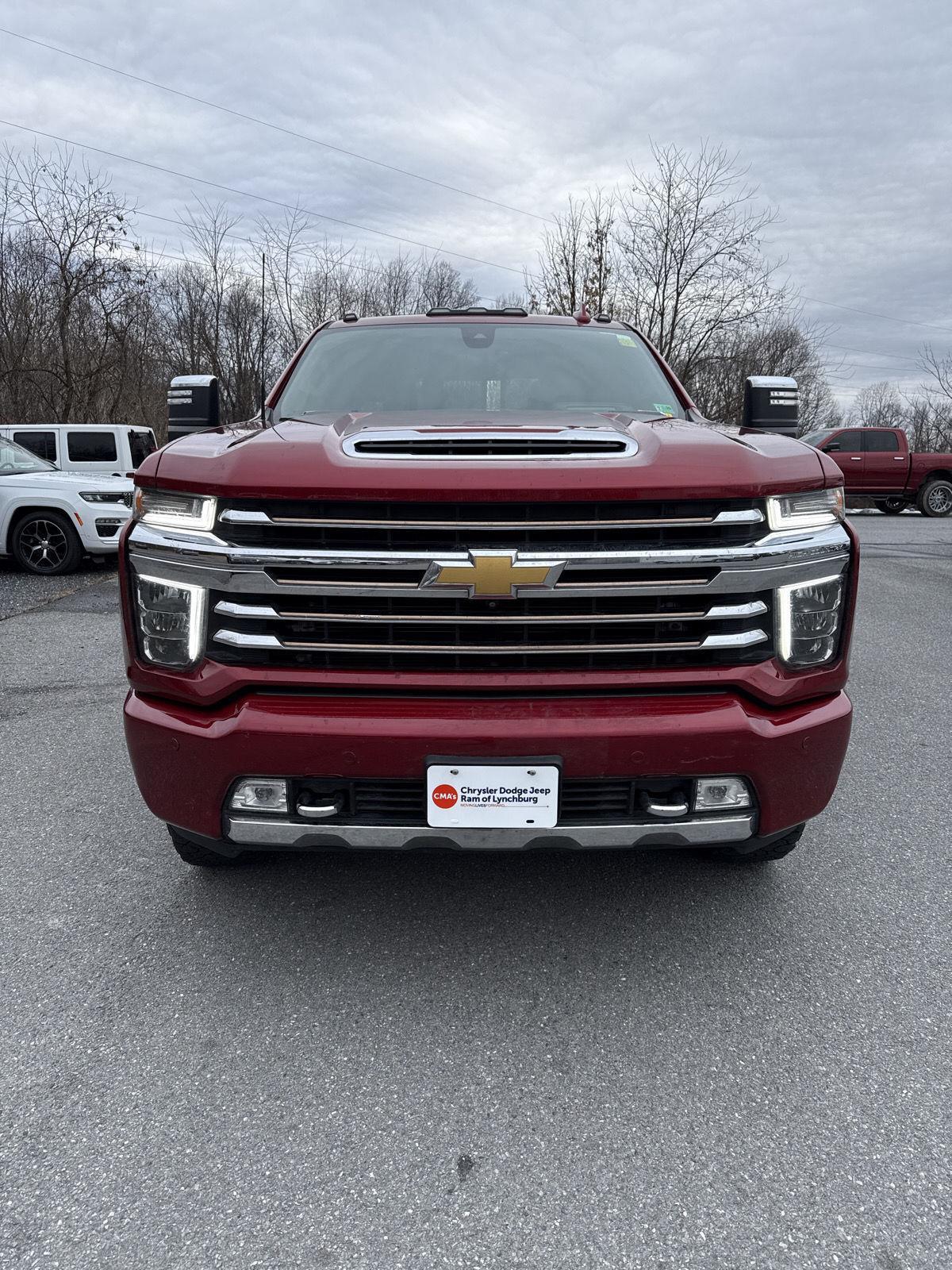 Thank you for choosing CMA's Chrysler Dodge Jeep Ram of Lynchburg, this Cherry Red Tintcoat 2021 Chevrolet Silverado 2500HD High Country is a great choice! Check out the following: Z71 Off-Road Package ($325 value) Hill Descent Control Off-Road Suspension Skid Plates Safety Package II Safety Alert Seat IntelliBeam Automatic High Beam On/off Following Distance Indicator Forward Collision Alert Lane Departure Warning Automatic Emergency Braking Technology Package Rear Camera Mirror 15" Diagonal Multicolor Head-Up Display Preferred Equipment Group 3LZ SiriusXM with 360L 10-Way Power Driver Seat Adjuster with Lumbar Driver Memory Power Sliding Rear Window with Defogger Front Bucket Seats with Center Console 10-Way Power Passenger Seat Adjuster with Lumbar Chevrolet Connected Access Capable Power Front Windows with Passenger Express Up/down Power Rear Windows with Express Down Deep-Tinted Glass Keyless Open and Start Power Front Windows with Driver Express Up/down Rear Wheelhouse Liners Color-Keyed Carpeting Floor Covering Front Carpeted Floor Mats Rear Carpeted Floor Mats Bluetooth For Phone Remote Vehicle Starter System Electric Rear-Window Defogger Black Chevytec Spray-On Bedliner with Chevrolet Logo Compass Floor-Mounted Center Console Auto-Dimming Inside Rearview Mirror Chrome Mirror Caps Heated and Auto-Dimming Power Vertical Trailering Mirrors Chrome Front Grille Integrated Trailer Brake Controller Electronic Cruise Control with Set and Resume Speed Wireless Charging Heated Driver and Front Outboard Passenger Seating Heated 2nd Row Outboard Seats 120-Volt Bed Mounted Power Outlet Heated Steering Wheel 120-Volt Instrument Panel Power Outlet Ventilated Driver and Front Passenger Seats Hitch Guidance with Hitch View Up-Level Rear Seat with Storage Package Perforated Leather-Appointed Seat Trim Front LED Fog Lamps Advanced Trailering System HD Radio Ultrasonic Front and Rear Park Assist OnStar and Chevrolet Connected Services Capable LED Cargo Area Lighting Rear Cross Traffic Alert Universal Home Remote 8" Diagonal Multicolor Digital Display DIC Steering Wheel Audio Controls Lane Change Alert with Side Blind Zone Alert Dual Charge-Only USB Ports Bed View Camera with Two Trailer Camera Provisions HD Surround Vision with 2 Trailer View Camera Provisions 4G LTE Wi-Fi Hotspot Capable Wireless Phone Projection High Country Deluxe Gooseneck/5th Wheel Prep Package Thank you so much for taking the time to look at this beautiful ride. Please Call/Text to schedule your test drive today with one of our Sales Professionals here at CDJR of Lynchburg! We really appreciate the opportunity to serve you!