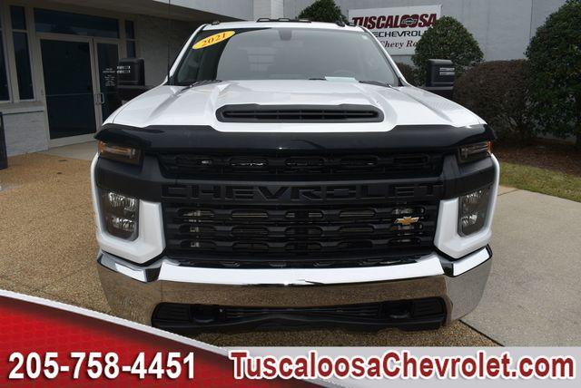 This 2021 Chevrolet Silverado 3500HD Work Truck in Summit White features a Duramax 6.6L V8 Turbodiesel 10-Speed Automatic RWD Back up Camera, Automatic Headlights, Touch Screen Controls, Steering Wheel Controls, Remote Start, Jet Black with Vinyl Seat Trim. Clean CARFAX. Odometer is 82183 miles below market average! Visit our virtual showroom 24/7 at www.Tuscaloosachevrolet.com.