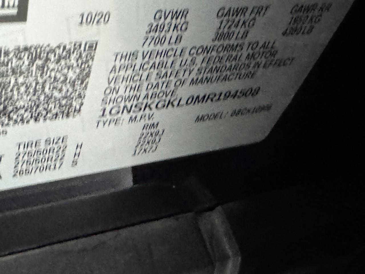 VIN: 1GNSKGKL0MR194508