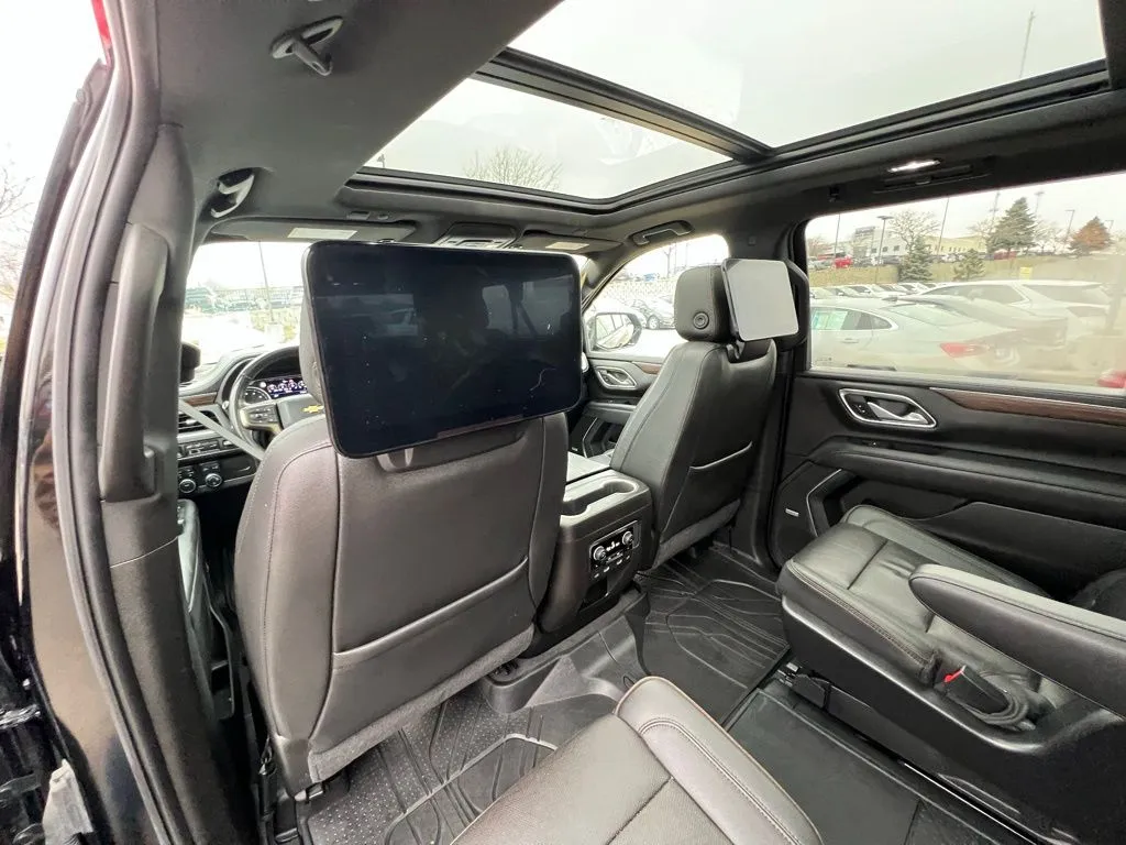 Discover the 2021 Chevrolet Suburban High Country, a luxurious used SUV designed to elevate your driving experience. With only 62,501 miles on the clock, this Black exterior and Jet Black interior model combines style, performance, and advanced technology. Powered by a robust 6.2-liter V8 engine producing 420 horsepower and 460 lb-ft of torque, it offers confident acceleration and towing capability. The 10-speed automatic transmission and 4WD system ensure smooth handling across diverse terrains, making it an ideal choice for both city driving and off-road adventures. This spacious SUV comfortably seats seven with three rows of premium seating, complemented by features like heated and rear heated seats, a sunroof, and a hands-free liftgate, providing convenience and comfort for every journey. Equipped with a suite of modern safety and security features, the 2021 Chevrolet Suburban prioritizes your peace of mind. It includes essential systems such as rear seat reminder, front center airbags, and parking sensors at both the front and rear to assist with precise maneuvering. The vehicle also boasts ABS with four-wheel anti-lock braking, auto-locking power door locks, and a rear camera system washer for enhanced visibility. Additional safety measures like a programmable safety key, hill descent control for off-road driving, and anti-lockout door locks further secure every trip, making this SUV a reliable choice for families and adventurers alike. Stay connected and entertained on every trip with the advanced technology offered in this Chevrolet Suburban. The centerpiece is a 10.2-inch touchscreen infotainment system that supports Apple CarPlay, Android Auto, and Bluetooth connectivity, enabling seamless smartphone integration. Hands-free calling and voice-activated radio allow for convenient operation without distraction. The premium surround sound system with nine speakers, including a dedicated subwoofer, delivers crystal-clear audio, complemented by HD radio and Pandora internet radio app compatibility. The vehicle features a Wi-Fi hotspot, enabling internet access on the go, while the touch screen interface simplifies control of various entertainment functions. This used Chevrolet Suburban is built for both comfort and capability, featuring an active suspension system with magnetic ride control. Driver-adjustable ride control allows for tailored comfort settings, whether you prefer a smooth or more responsive ride. The electronic hi-lo 4WD selector and part-time 4WD with on-demand setting provide versatility for tackling different terrains. The rear limited-slip differential enhances traction, ensuring stability and confidence whether towing or navigating challenging off-road conditions. Overall, these performance features combine to deliver a smooth, controlled driving experience regardless of the environment.