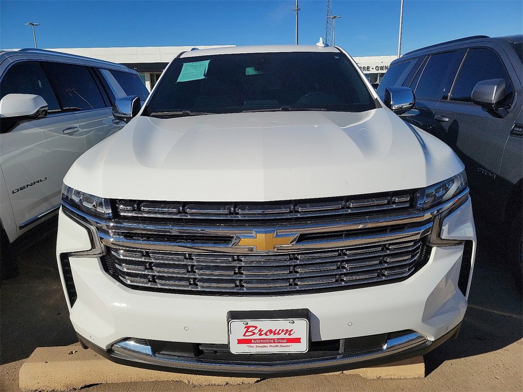 2021 Summit White Chevrolet Tahoe Premier 4WD EcoTec3 5.3L V8 This Chevrolet Tahoe has many features and is well equipped including, Leather Seats, Heated Seats, Backup Camera, Apple CarPlay, Android Auto, Bluetooth Hands-Free, Cargo Package, Heat Package, Power Package. Thank you for taking the time to look at this handsome 2021 Chevrolet Tahoe. If you're tired of other Amarillo car dealerships treating you poorly, come see us. We know there is nothing worse than dealing with rude salespeople, which is why we take a softer approach. We don't like to use high-pressure sales tactics, and we treat each and every customer who sets foot on our lot with respect. If you're seeking a relaxed car buying experience in Amarillo or anywhere in the Texas panhandle, come see the Brown Automotive Group!