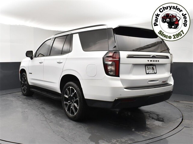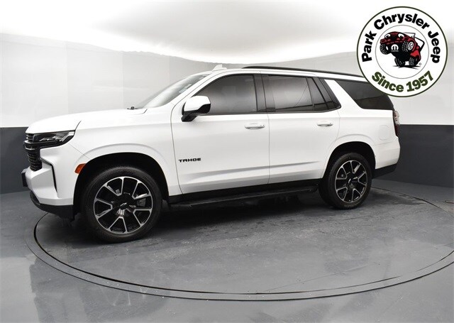 Enhance your journey with our Accident Free 2021 Chevrolet Tahoe RST 4WD in Summit White that is a versatile performer on the road or off! Motivated by a 5.3 Liter V8 that delivers 355hp paired to a 10 Speed Automatic transmission for robust pulling and passing capability. This Four Wheel Drive SUV also features a Premium Smooth Ride suspension for composed handling even in challenging conditions, and it sees nearly 20mpg on the highway with a bold but refined look. Check out the exclusive RST upgrades, including a black grille, Black Ice accents, and 22-inch alloy wheels that add flair to go with our Tahoe's LED lighting, heated power mirrors, and a hands-free liftgate for easy convenience. Our RST cabin comes in a trim-specific Jet Black color theme with Victory Red stitching. It showcases three rows of comfort with leather heated front seats plus a leather-wrapped steering wheel, tri-zone automatic climate control, keyless start, and sophisticated technology to help keep your whole crew connected. Highlights include wireless Android Auto/Apple CarPlay, a 10.2-inch touchscreen, WiFi capability, Bluetooth, and a Bose audio system. You'll appreciate the ample cargo space, too! Chevrolet helps keep you out of harm's way with automatic emergency braking, forward-collision warning, a following-distance indicator, rear parking sensors, and an HD rearview camera. Our Tahoe RST is built with you in mind! Save this Page and Call for Availability. We Know You Will Enjoy Your Park Chrysler Jeep Used Test Drive Towards Ownership!