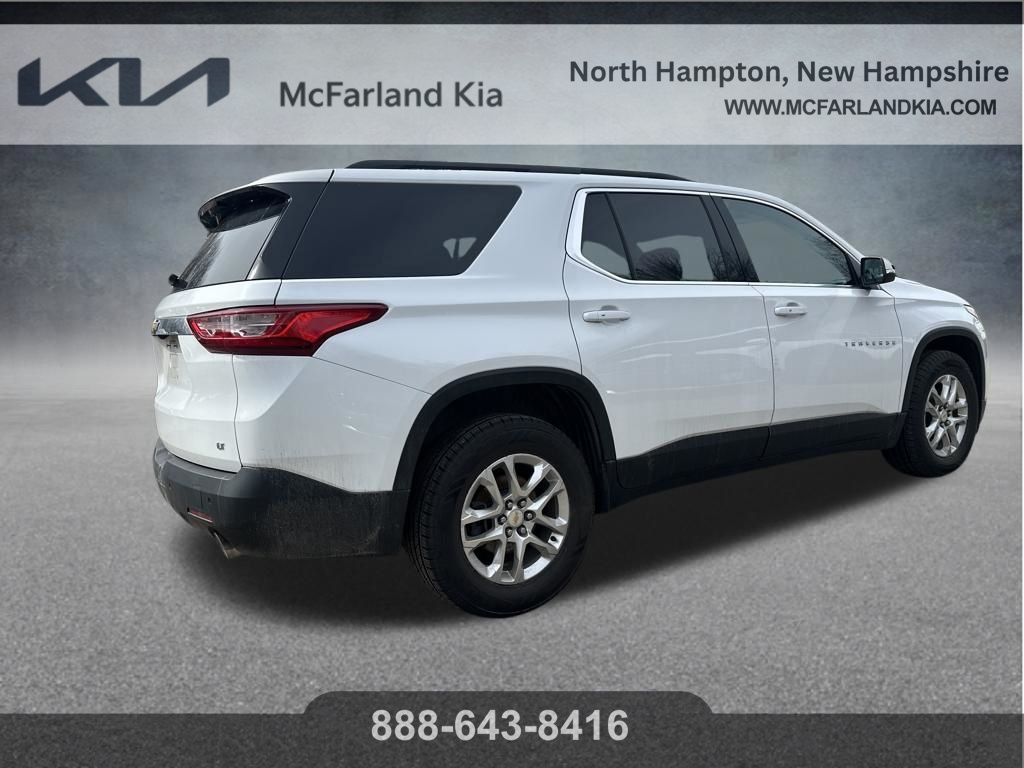 Priced below KBB Fair Purchase Price! Clean Carfax. Carfax One-Owner. Summit White 2021 Chevrolet Traverse LT 1LT 4D Sport Utility AWD 9-Speed Automatic 3.6L V6 SIDI VVT. McFarland Kia offers an extensive inventory of quality pre-owned vehicles for less! We go the extra mile during our reconditioning process to ensure that our vehicles meet the highest standard of quality. We offer a wide selection of vehicles of different makes, models, styles, and colors to satisfy most buyers. If you don't see it...we could find it! If this vehicle doesn't meet all your criteria, reach out to the Sales Department to speak with a pre-owned specialist to discuss all your transportation needs! With access to hundreds of quality pre-owned vehicles, we can find the perfect car for you! Get the best bang for your buck at McFarland Kia! We can be reached at 603-758-3180, or visit our showroom located at 137 Lafayette Rd. North Hampton, NH 03862. We look forward to putting the right vehicle in your driveway! McFarland Kia is dedicated to your satisfaction before, during, and after your purchase. We'll go the extra mile to take care of you.