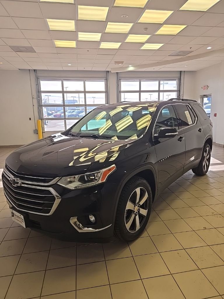 Recent Arrival! Carfax One-Owner. Mosaic Black Metallic 2021 Chevrolet Traverse LT Leather AWD 9-Speed Automatic 3.6L V6 SIDI VVT AWD. Odometer is 27,878 miles below market average! All vehicles are subject to prior sale. Price does not include applicable tax, title, license, and a $387.00 documentation fee or other fees required by law, lending institutions, and/or lessors. Vehicles shown at different locations are not currently in our inventory (not in stock) but can be made available at our location within a reasonable time after your request. The payment information provided here is not a commitment by any organization to provide credit, leases or other programs. We carry all makes and models as well as New and Certified Pre-Owned Vehicles with Automatic and Manual Transmission, Hybrid vehicles with 3rd Row Seats, Backup Camera, Bluetooth, Hands-Free, Cruise Control, DVD Player, Heated Seats, Cooled Seats, Heated Steering Wheel, Blind Spot Warning, Lane Departure Warning, Keyless Entry, Leather Seats, Multi-zone Climate Control, Navigation, Portable Audio Connection, Power Locks, Power Windows, Remote Start, Push Button Start, Premium Audio, Technology Package, Premium Wheels, Security System, Steering Wheel Controls, Sunroof, Moonroof, Panoramic Moon Roof, Xenon Headlamps, Running Boards, Power Running Boards, Power Liftgate, Tow Package, and Trailer Hitch. Contact sales staff to verify equipment.