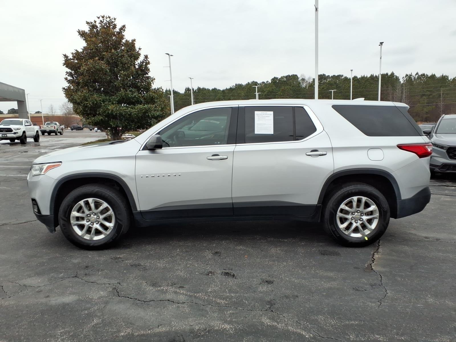 This 2021 Chevrolet Traverse LS, has a Silver Ice Metallic exterior and a Jet Black interior color. 132,831 miles. This vehicle is offered by Classic Toyota Henderson and we are located at 205 Toyota Ln Henderson NC 27537. If you are looking for something a little different than a 2021 Chevrolet Traverse be sure to check out the other new and pre-owned inventory at our other locations here: www.ClassicToyotaHenderson.com. Located right off of I-85 in Henderson, NC. Classic Toyota Henderson 205 Toyota Ln. Henderson, NC 27537 252-654-9735. Whether this 2021 Chevrolet Traverse is the one you've been looking for or we need to work to find you just the right one.... Classic Toyota Henderson has nearly 1,000 pre-owned vehicles at your fingertips right here at our dealer group site: www.MillsAutoGroup.com. We search the market to bring you the best inventory available! When available your new to you pre-owned will have all the latest and greatest technology and safety features like: Apple CarPlay and Android Auto, Bluetooth Hands Free Calling Technology, Dynamic Headlights and Backup Camera, Navigation / NAV / GPS along with Blindspot Monitoring for making trips smooth and easy. With 20+ locations and growing, we have whatever vehicle you are looking for or we can find it for you.