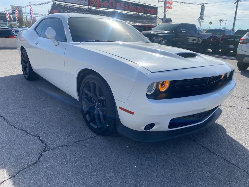 A modern muscle machine, our 2021 Dodge Challenger GT Coupe moves you straight to the head of the pack in White Knuckle! Powered by a 3.6 Liter Pentastar V6 supplying 303hp matched to a paddle-shifted 8 Speed Automatic transmission for bold acceleration on your command. Go ahead and put the performance suspension to the test with this Rear Wheel Drive coupe that rides like its on rails yet still returns nearly 30mpg on the highway. Impressive at any speed, our Challenger stands out with its LED lighting, fog lamps, SRT front splitter, rear spoiler, a functional hood scoop, and stunning 20-inch alloy wheels with two-piece center caps. Our GT cockpit inspires you to push your limits in houndstooth sport-cloth front seats with six-way power for the driver plus a leather performance-style steering wheel, dual-zone automatic climate control, and intuitive technology that keeps you connected to your world. Highlights include a 7-inch touchscreen, Android Auto®, Apple CarPlay®, Bluetooth®, and a six-speaker sound system. A spacious trunk and ample rear legroom add practicality, too! Dodge helps keep you rolling confidently thanks to features like a backup camera, multi-stage airbags, electronic stability/traction control, tire-pressure monitoring, ABS, hill-start assist, and more. Just fire up our Challenger GT coupe, and you'll feel fantastic! Save this Page and Call for Availability. We Know You Will Enjoy Your Lithia Sahara Chrysler Dodge Ram L0517 Test Drive Towards Ownership! Must finance with Chrysler Capital for all discounts to be applied.