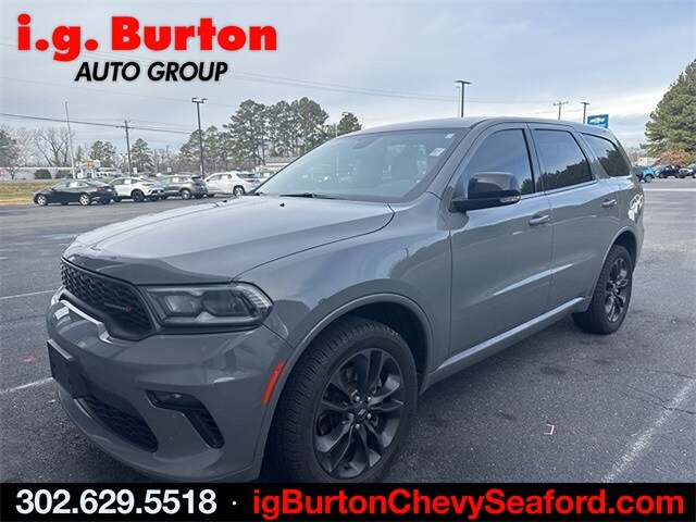 2021 Dodge Durango GT Plus Blacktop AWD with just 77K miles! Clean Carfax, freshly serviced and ready to go! Dressed in Destroyer Gray, sharp Durango, must see! This vehicle is scheduled to leave for Manheim Auto Auction and is being offered for a limited time, see it at the Seaford Chevrolet location, Backup Camera, leather seats, clean Carfax, extra clean, local trade, local one owner trade. Recent Arrival! 2021 Dodge Durango GT Plus Destroyer Gray Clearcoat. Since 1908, i.G. Burton Auto Group has served Delmarva and its surrounding communities with outstanding sales and service as its longest-standing family-owned and operated dealer group. See why we proudly say, "Nobody Beats a Burton Deal! NOBODY!"