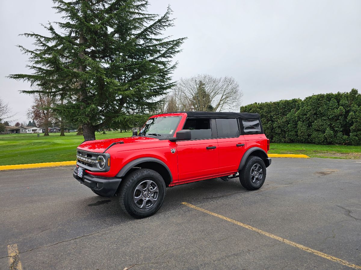 The 2021 Ford Bronco Clean title Big Bend 4 Door 4x4, cloaked in an eye-catching Race Red exterior, commands attention on and off the road. This powerful SUV boasts a robust 2.3L 4-cylinder engine that seamlessly balances efficiency and performance, ensuring an exhilarating driving experience. With its Four Wheel Drive drivetrain, the Bronco effortlessly tackles diverse terrains, making it an ideal companion for adventurous spirits who yearn for exploration. Inside, the vehicle offers a sophisticated yet rugged charm with its Medium Sandstone and Black interior. The spacious cabin is thoughtfully designed to accommodate both comfort and practicality, featuring durable materials that withstand the rigors of off-road journeys. The ergonomically arranged control panel and modern technology integration provide a seamless connection to the road and the environment, enhancing both convenience and safety for all passengers. The Big Bend trim further elevates the Bronco's appeal with added features tailored to outdoor enthusiasts. Equipped with off-road-tuned suspension and ample cargo space, it is fully prepared for weekend getaways or extended adventures. The utility-focused design doesn’t compromise on style, ensuring the Ford Bronco Big Bend is as comfortable as it is capable, whether navigating city streets or rugged mountain trails. If you’ve been searching for the perfect adventure SUV in Woodburn, Salem, Albany, Canby, Vancouver, Eugene, Medford, the Portland area, or even Seattle, this 2021 Ford Bronco Big Bend 4X4 is exactly what you’ve been waiting for. Equipped with Ford’s 2.3L EcoBoost Turbo engine and a 10-speed automatic, this Bronco delivers strong power, excellent fuel efficiency, and smooth driving both on and off the road. The Big Bend trim gives you upgraded comfort, modern tech, and Bronco’s classic rugged personality. This Bronco is built for weekend exploring, camping trips, mountain drives, or simply enjoying Oregon and Washington scenery with the doors off and the top open. It’s modern, tough, reliable, and one of the hottest SUVs on the market. If you’re shopping anywhere from Woodburn to Salem, Albany, Canby, Vancouver, Eugene, Medford, the greater Portland area, or even coming down from Seattle, this Bronco is absolutely worth the drive.