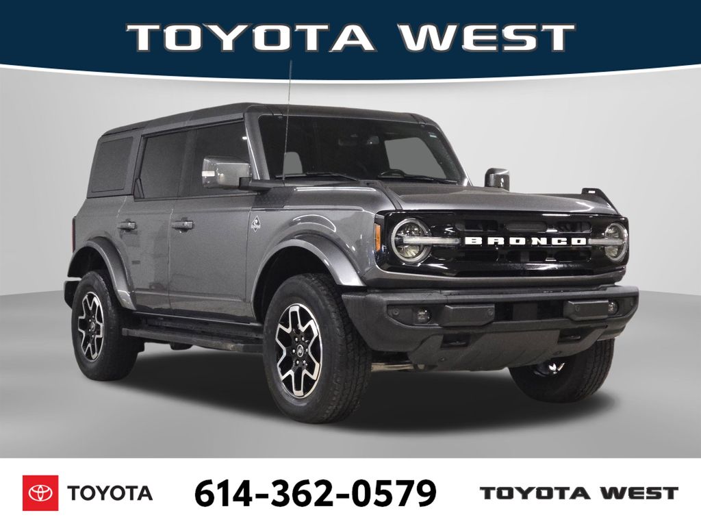 Gray Metallic 2.7L EcoBoost V6 10-Speed Automatic. 2021 Ford Bronco Outer Banks. Comfortable and reliable. Great seating capacity. Easy access to rear trunk area.