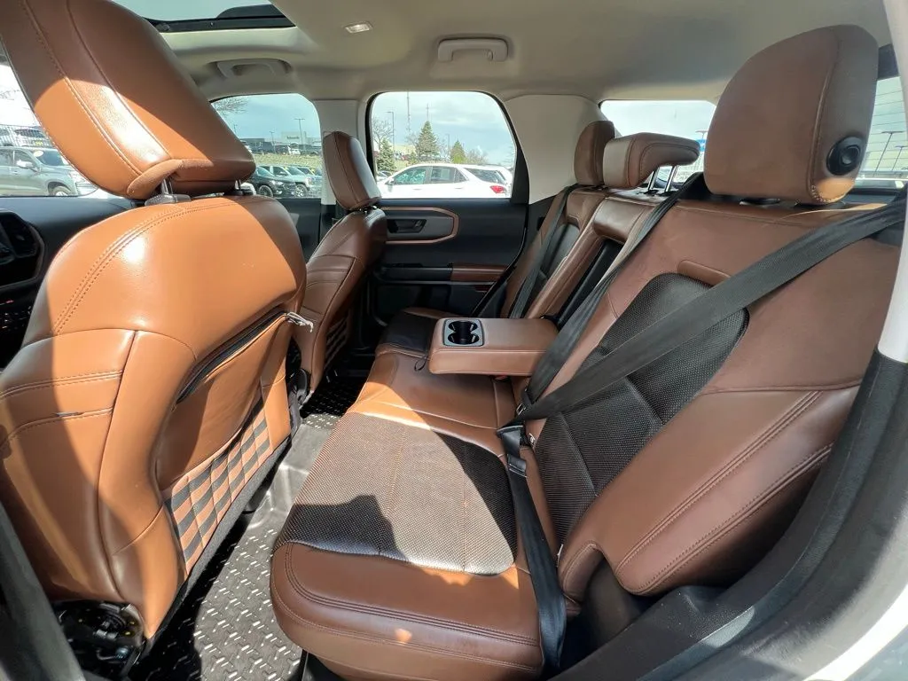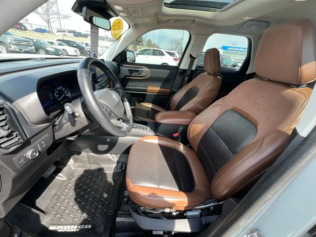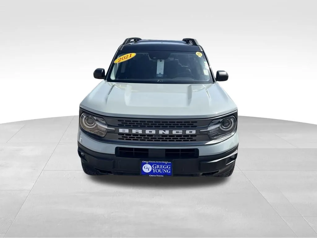 Discover the 2021 Ford Bronco Sport Badlands, a versatile SUV built for adventure and daily drives alike. With its striking Cactus Gray exterior and Ebony/Roast interior, this used vehicle offers a perfect blend of style and functionality. Equipped with a turbocharged 2.0-liter four-cylinder engine producing 250 horsepower and 277 lb-ft of torque, it delivers confident performance whether you're navigating city streets or tackling off-road terrain. The 8-speed automatic transmission and 4WD system ensure smooth handling and traction in all conditions. This Bronco Sport combines efficiency with capability, achieving up to 26 mpg highway and 21 mpg city, making it an ideal choice for drivers seeking both power and economy. Seating five comfortably, it features a user-friendly cabin loaded with modern tech, including Apple CarPlay, Bluetooth, and a Wi-Fi hotspot, ensuring connectivity on the go. Additional conveniences like adaptive cruise control, lane keep assist, collision warning, and blind spot monitoring enhance safety and driving confidence, while amenities such as heated seats, a sunroof, push start, and satellite radio create a comfortable, connected experience. This used Ford Bronco Sport Badlands is packed with advanced safety and security features designed to protect you on every journey. A front camera system provides enhanced visibility, complemented by front washer for clear views in adverse conditions. Driver safety is prioritized with knee airbags and four-wheel ABS, along with emergency braking preparation to help prevent collisions. Anti-lock door locks with auto-locking and anti-lockout features add security, while a programmable safety key offers added control. Off-road driving assist systems, including hill ascent and descent control, ensure stability and confidence on rugged trails. These features combine to make this SUV a reliable partner whether on city streets or off-road adventures.