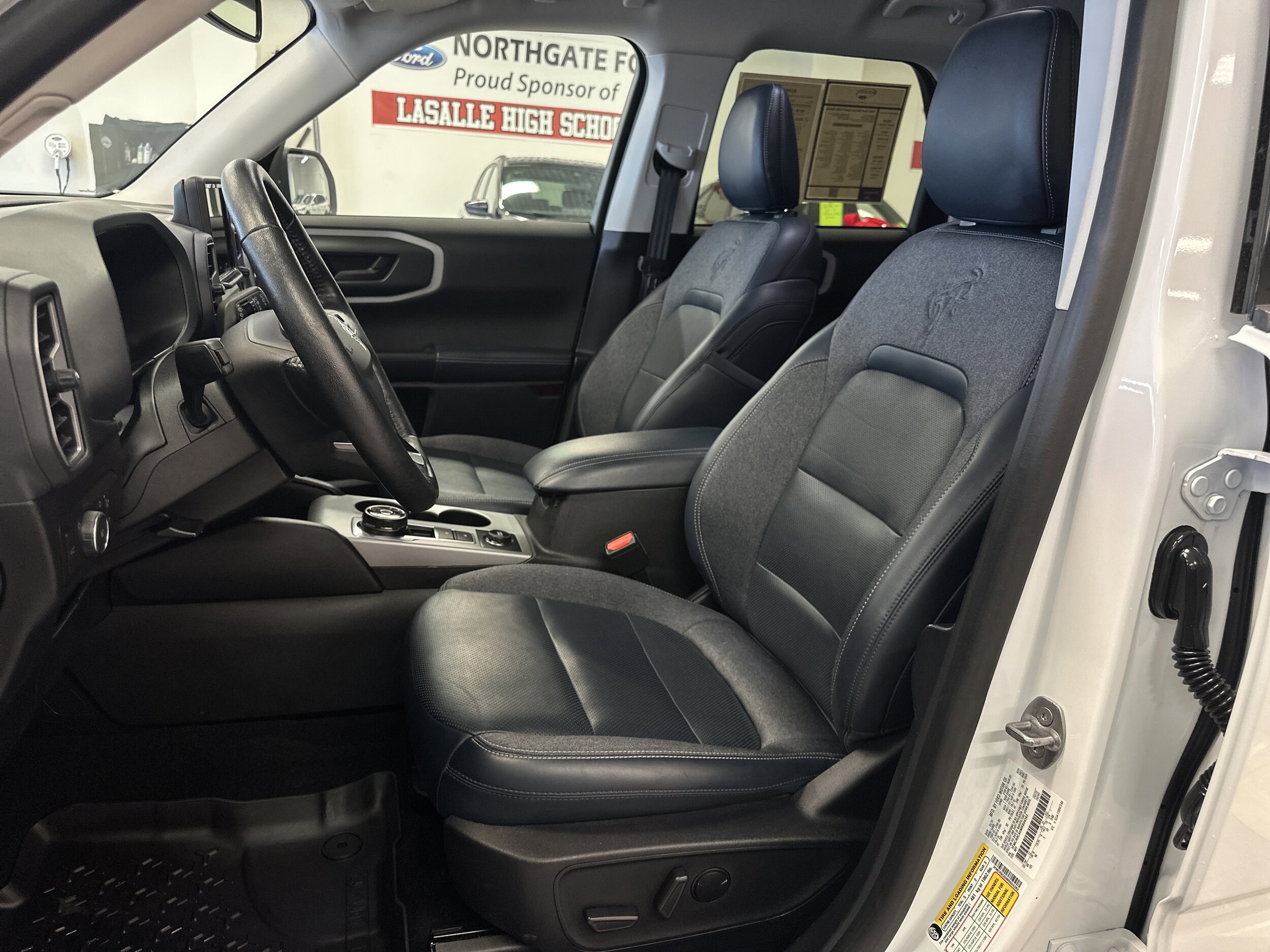 Bronco Sport Outer Banks, 4D Sport Utility, 4WD, Navy Pier with leather trimmed heated sport contour bucket seats, Ford Co-Pilot 360 Assist+, AM/FM radio: SiriusXM, Auto High-beam Headlights, Electronic Stability Control, Equipment Group 300A, Evasive Steering Assist, Exterior Parking Camera Rear, Ford Co-Pilot360 Assist+, Heated front seats, Intelligent Adaptive Cruise Control with Stop & Go, Rear Parking Sensors, SiriusXM Radio, SYNC 3 Communications & Entertainment System, Voice-Activated Touchscreen Navigation System, Wheels: 18" Ebony Black-Painted Aluminum. 25/28 City/Highway MPG Oxford White 2021 Ford Bronco Sport Outer Banks. All vehicles are subject to prior sale. Price does not include applicable tax, title, license, and a $387.00 documentation fee or other fees required by law, lending institutions, and/or lessors. Vehicles shown at different locations are not currently in our inventory (not in stock) but can be made available at our location within a reasonable time after your request. The payment information provided here is not a commitment by any organization to provide credit, leases or other programs.