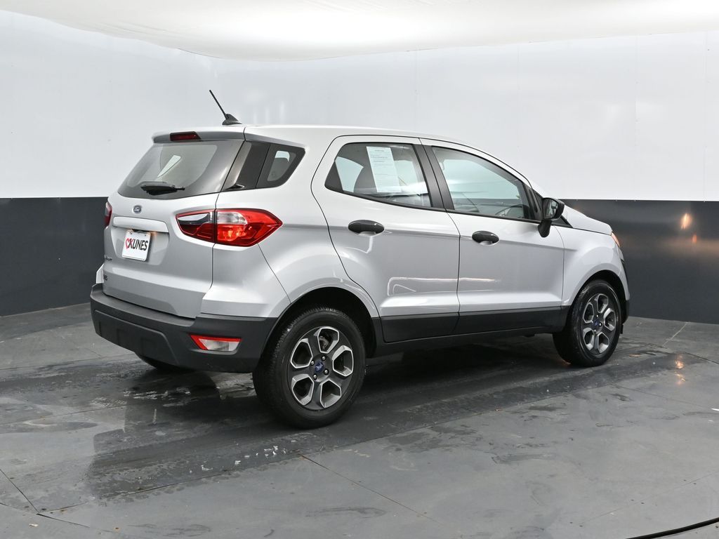 2021 Ford EcoSport S Moondust FWD EcoBoost 1.0L I3 GTDi DOHC Turbocharged VCT. Recent Arrival! Clean CARFAX. All vehicles are subject to prior sale. Price does not include applicable tax, title, license, processing and/or documentation fees, and destination charges. Vehicles shown at different locations are not currently in our inventory (Not in Stock) but can be made available to you at our location within a reasonable date from the time of your request, not to exceed one week. Consumers, please be aware that the above advertised price assumes you are purchasing the vehicle from the Kunes Auto Group dealership where it is listed as being offered for sale. If the vehicle is transferred from one location to another, a transfer fee for this transportation of $300 will be added to the purchase transaction. If you would like to purchase such vehicle without paying a transfer fee, you can take delivery of the vehicle at the store it is listed as being sold from and avoid the additional transfer fee. Shipping fees vary depending on location, contact dealer for shipping details and costs. Any MPG listed is based on model year EPA mileage ratings. Use for comparison purposes only.