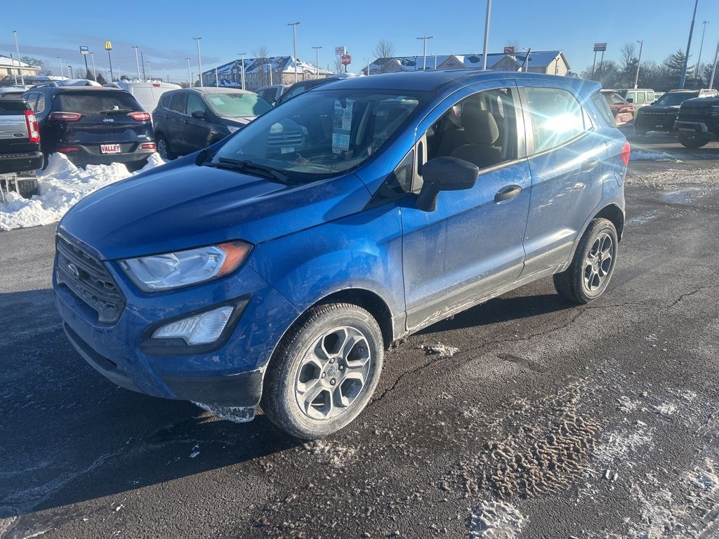 This Ford EcoSport has many features and is well equipped, Great Price, Apple CarPlay and/or Android Auto, Brake Assist, Premium Audio, Satellite Radio, Wi-Fi Hotspot, Steering Wheel Controls, Cruise Control, Premium / Alloy Wheels. Recent Arrival! 2021 Lightning Blue Ford EcoSport S 4WD 2.0L I4 Ti-VCT GDI We offer video and live video chat. Please reach out to our sales department for more information 380-227-5015. In an effort to save you time and money, we utilize 3rd party software to help analyze market pricing to be as competitive as possible. Hurry, this pricing philosophy leads to our vehicles selling very quickly. Priced below KBB Fair Purchase Price! Clean CARFAX. Odometer is 24115 miles below market average! 23/29 City/Highway MPG Thank you for taking the time to look at this beautiful-looking 2021 Ford EcoSport. Here at Valley Ford of Columbus we use live market pricing. Our price is pulled live today using Cox vAuto Market Scan. Whether you are looking for a Great Deal, a Great Price, or a Great Value, Valley Ford of Columbus has you covered. Also get a complimentary CarFax available today. Join us for the best experience you will ever have. If we do not have what you are looking for, just let us know and we will find it. We have access to any make/model and offer Certified Pre-Owned vehicles too. We can also locate vehicles with just about any option to include Sunroof, Moonroof, Navigation System, Heated Steering Wheel, HomeLink, LED Headlights, DVD Player, Rear Seat Entertainment, Backup Camera, Brake Assist, Automatic Emergency Braking, Blind Spot Monitoring, Cross Traffic Alert, Rear Cross Traffic Alert, Lane Departure Warning, Night Vision, Head-up Display, Automatic Parking, Cruise Control, Adaptive Cruise Control, Rain Sensing Wipers, Remote Engine Start, Memory Seat, Leather Seats, Heated Seats, Cooled Seats, Third (3rd) Row Seats, Steering Wheel Controls, Multi-zone Climate Control, Keyless Entry, Allow Wheels, Premium Wheels, Apple CarPlay, Android Auto, WiFi Hotspot, Premium Audio Sound System, Bluetooth® Audio, Hands-Free Audio, Portable Audio Connection, USB Port, Satellite Radio, Trailer Tow, Tow Hitch.