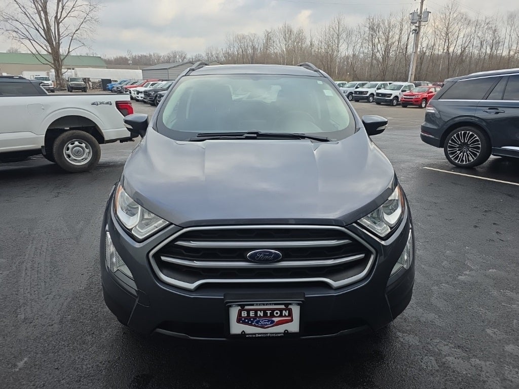 Smoke Metallic 2021 Ford EcoSport SE FWD 6-Speed Automatic EcoBoost 1.0L I3 GTDi DOHC Turbocharged VCT AppLink/Apple CarPlay and Android Auto, Brake assist, Delay-off headlights, Equipment Group 200A, Exterior Parking Camera Rear, Front fog lights, Fully automatic headlights, Illuminated entry, Leather Shift Knob, Power moonroof, Rear Parking Sensors. Recent Arrival! 27/29 City/Highway MPG Our goal is to give you an interactive tour of our new and used inventory, as well as allow you to conveniently get a quote, schedule a service appointment, or apply for financing. We are proud to serve the Benton, KY, Cadiz, KY, Draffenville, KY, Kuttawa and surrounding counties. At our dealership, we have devoted ourselves to helping and serving our customers to the best of our ability. We believe the cars we offer are the highest quality and ideal for your life needs. We understand that you rely on our website for accurate information, and it is our pledge to deliver you relevant, correct, and abundant content. You can visit us online at www.bentonford.com or call us at 270-527-17!
