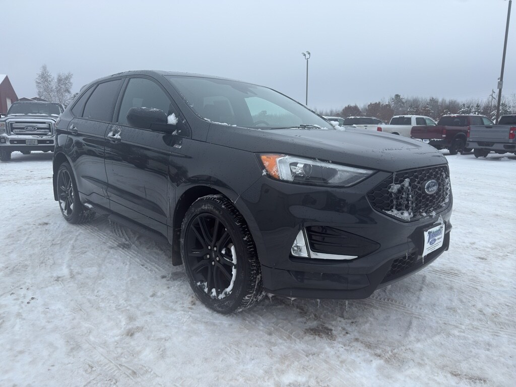 At Timber Ford of Hayward, our staff is more than employees - they're family. Our commitment to our customers extends beyond being knowledgeable and having a diverse selection of vehicles; we also offer quality and timely service. We haven't earned the privilege of your loyalty if we don't meet your needs and exceed your expectations. Proudly serving Hayward, Rice Lake, Minong, Spooner, Cable, Ashland, Superior, Winter, Cumberland, Springbrook, Trego, and Stone Lake. It has automated speed control that adjusts to maintain a safe following distance, enhancing highway driving convenience. Conquer any rainy, snowy, or icy road conditions this winter with the all wheel drive system on this Ford Edge. The Ford Edge comes equipped with Android Auto for seamless smartphone integration on the road. Apple CarPlay: Seamless smartphone integration for this model - stay connected and entertained on the go! The vehicle keeps you comfortable with Auto Climate. This 2021 Ford Edge has an automatic transmission. See what's behind you with the back up camera on this unit. Good News! This certified CARFAX 1-owner vehicle has only had one owner before you. This mid-size suv has a clean CARFAX vehicle history report. Set the temperature exactly where you are most comfortable in this 2021 Ford Edge. The fan speed and temperature will automatically adjust to maintain your preferred zone climate. This model warns of approaching vehicles with Cross-Traffic Alert. Easily set your speed in this model with a state of the art cruise control system. Increase or decrease velocity with the touch of a button. Electronic Stability Control is one of many advanced safety features on this mid-size suv. This unit has a 4 Cyl, 2.0L high output engine. This vehicle is equipped with a gasoline engine. This Ford Edge projects refinement with a racy metallic gray exterior. This model features a hands-free Bluetooth phone system. This mid-size suv is pure luxury with a heated steering wheel. The leather seats in this 2021 Ford Edge are a must for buyers looking for comfort, durability, and style. With the adjustable lumbar support in this vehicle your back will love you. The spacious cabin accommodates your family and friends in comfort. Take it to the mountains or the beach. This unit can handle it all. You'll never again be lost in a crowded city or a country region with the navigation system on it. Enjoy the convenience of the power liftgate on this Ford Edge. The state of the art park assist system will guide you easily into any spot. Start this 2021 Ford Edge from inside with remote start.