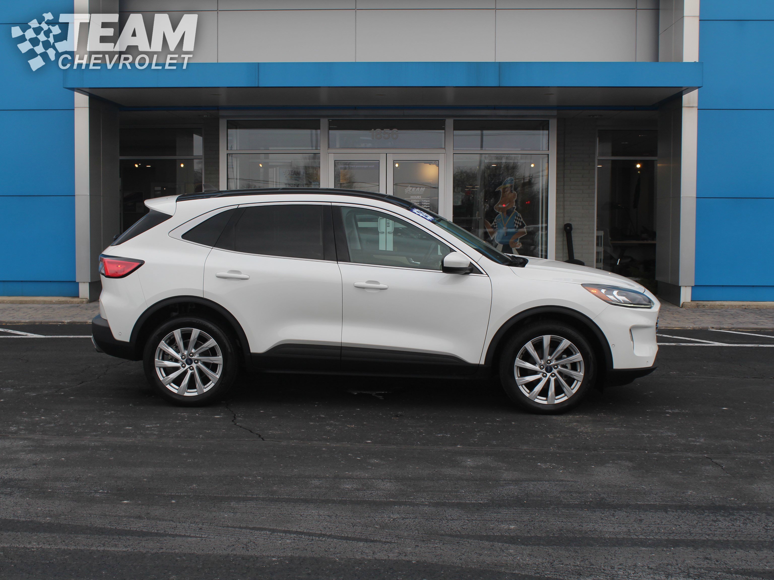 Heated leather seats, navigation! Sunroof, AWD - never worry about the weather! Heated steering wheel!! Priced under current market value!! Remote start!! Rear view camera! Team Chevrolet 12 Month or 12,000 Miles Limited Power Train Warranty! Manager special! Bluetooth hands-free calling! Local trade in - never a rental! Certified by Carfax - no accidents! Certified by Carfax - one owner! Escape Titanium, 4D Sport Utility, EcoBoost 2.0L I4 GTDi DOHC Turbocharged VCT, 8-Speed Automatic, AWD, Star White Metallic Tri-Coat, Ebony/Sandstone w/Heated Leather-Trimmed Front Sport Contour Seats, Black Roof-Rack Side Rails, Chrome 5-Bar Upper Grille w/Chrome Surround, Class II Trailer Tow Package, Equipment Group 401A, Front & Rear Floor Mats, Front dual zone A/C, Head-Up Display, Heated Leather-Trimmed Front Sport Contour Seats, Heated steering wheel, Illuminated entry, Leather Wrapped Steering Wheel, Memory seat, Navigation System, Panoramic Vista Roof, Power Liftgate, Security system, Steering wheel mounted audio controls, Titanium Elite Package, Wheels: 19" Luster Nickel-Painted Aluminum, Wireless Charging Pad. 2021 Ford Escape Star White Metallic Metallic Tri-Coat Titanium AWD 8-Speed Automatic EcoBoost 2.0L I4 GTDi DOHC Turbocharged VCT.