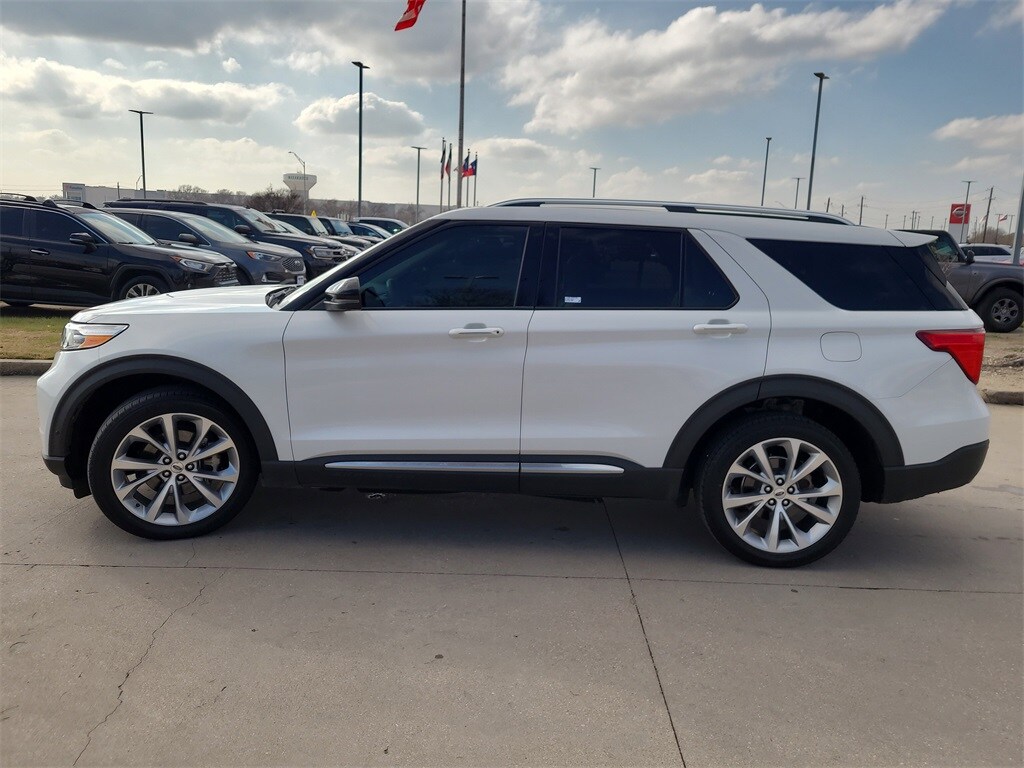 White 2021 Ford Explorer Platinum 3.0L EcoBoost V6 4WD 10-Speed Automatic 4WD. 2 Years Free Oil Changes. Recent Arrival! All our used cars are fully inspected by ASE Certified Mechanics. We fully detail the car. It is ready for you to take home and not worry about car troubles! Get peace of mind today and get a car from Dallas Autoplex here in Waxahachie. A short Drive from Dallas Fort Worth that will save you money.