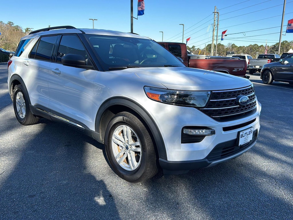 Thank you for choosing Butler Chevrolet, this Oxford White 2021 Ford Explorer XLT is a great choice! Check out the following: One Owner! No Accidents! City 21/ Hwy 28. Forward collision mitigation - Forward thinking. You look away for just a second and suddenly the vehicle in front of you has stopped. That's when the forward collision mitigation system comes to life. When it senses an impending impact, it will activate a combination of features to help prevent or reduce the severity of an accident. Forward collision mitigation is always looking ahead. Pedestrian impact prevention - An extra step toward safety. Pedestrians don't always stop, look, and listen, but with Pedestrian Impact Prevention, your vehicle is equipped to better see them and avoid them. This system constantly monitors the road ahead to identify and track pedestrians. It projects that image to an interior display screen, AND should an impact become likely, Pedestrian impact prevention takes steps to avoid a collision. Rear camera with washer - Watching your back! The rear camera helps you see obstacles and hazards you otherwise couldn't by showing enhanced images of what is behind you. Even if there are sloppy conditions, the washer keeps the camera's view clean. Rear camera with washer is an extra set of eyes that's both convenient and safe. Smart device mirroring - Smartphone, meet smart car. You can control your device through your vehicle's infotainment system. Smart device mirroring brings together safety and convenience by making it easier to find what you're looking for while keeping your eyes on the road. Mobile hotspot - WiFi on the fly. Connect your devices to the Internet through your vehicle's private mobile hotspot and take the internet wherever your journey takes you, without eating up your data allowance. Find the hotspot with mobile hotspot.