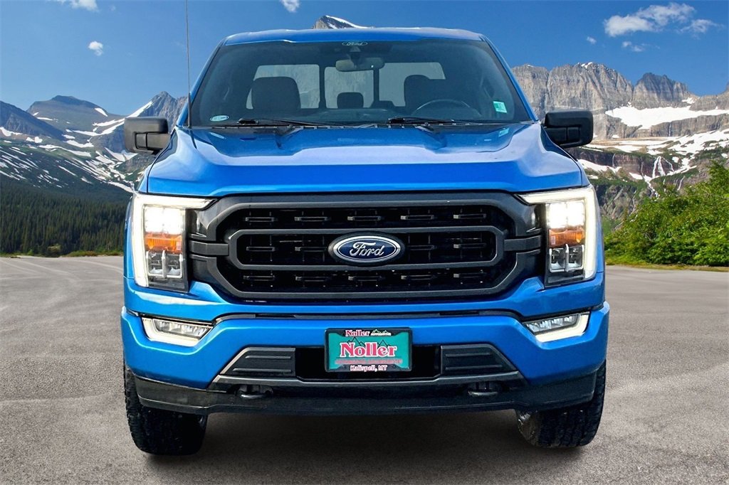 Velocity Blue Metallic 2021 Ford F-150 XLT FX4 4WD 10-Speed Automatic 2.7L V6 EcoBoost, 4WD, 10-Way Power Driver & Passenger Seats, 2-Bar Style Grille w/Chrome 2 Minor Bars, 8" Productivity Screen in Instrument Cluster, ABS brakes, Accent-Color Step Bars, Alloy wheels, Auto-Dimming Rear-View Mirror, Black 2-Bar Style Grille w/Black Surround/Accents, Body-Color Door & Tailgate Handles, Body-Color Front & Rear Bumpers, Box Side Decals, Bumpers: chrome, Chrome Door & Tailgate Handles w/Body-Color Bezel, Chrome Single-Tip Exhaust, Chrome Step Bars, Class IV Trailer Hitch Receiver, Compass, Dual Zone Automatic Temperature Control, Electronic Locking w/3.55 Axle Ratio, Electronic Stability Control, Equipment Group 302A High, Extended Range 36 Gallon Fuel Tank, Front fog lights, Heated door mirrors, Heated Front Seats, Illuminated entry, Integrated Trailer Brake Controller, Intelligent Access w/Push Button Start, Leather-Wrapped Steering Wheel, LED Box Lighting w/Zone Lighting, LED Reflector Headlamps, LED Sideview Mirror Spotlights, Low tire pressure warning, Onboard 400W Outlet, Outside temperature display, Power Glass Heated Sideview Mirrors, Pro Trailer Backup Assist, Radio: AM/FM SiriusXM w/360L, Radio: AM/FM Stereo w/6 Speakers, Rear Under-Seat Storage, Remote keyless entry, Remote Start System w/Remote Tailgate Release, SecuriCode Drivers Side Keyless-Entry Keypad, Steering wheel mounted audio controls, SYNC 4, SYNC 4 w/Enhanced Voice Recognition, Tachometer, Telescoping steering wheel, Tilt steering wheel, Traction control, Trailer Tow Package, Trip computer, Unique Sport Cloth 40/Console/40 Front-Seats, Voltmeter, Wheels: 20" 6-Spoke Dark Alloy Painted Aluminum.