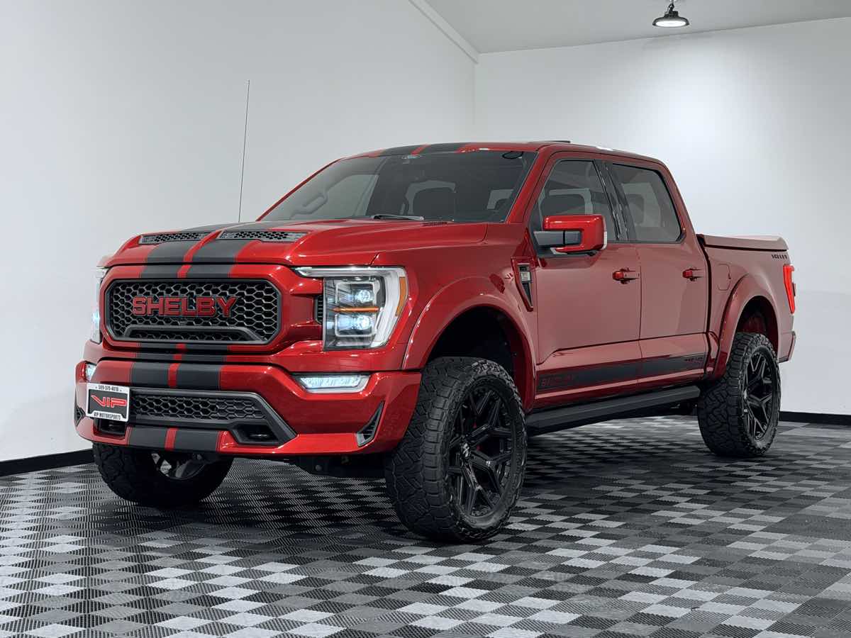 Rare and unmistakably bold, our incredible Accident Free 2021 Ford Shelby F-150 SuperCrew 4X4 in commanding Rapid Red delivers extreme performance, rugged off-road capability, and Shelby's signature sophistication, built to conquer any terrain in exclusive style! Owning the scene with its SuperCharged 5.0 Liter V8 delivering an astonishing 775hp connected to an advanced 10 Speed Automatic transmission for immediate power on demand. Our Four Wheel Drive truck provides hallmark Shelby performance with tunable FOX shocks that let you dial in a smooth ride for the town or a full-blown off-road setup that leaves other trucks in your dust. You'll enjoy Shelby styling, too, with engraved 20-inch alloy wheels, a dual-intake hood, black-ceramic dual exhaust tips, powder-coated step bars, and plenty of head-turning graphics. Open the door to our Shelby F-150, and the cabin gets an aggressive makeover. It includes two-tone leather front seats with the Shelby Snake logo, embroidered headrests, a carbon-fiber interior package, a Snake-badged console lid, and a serialized dash plaque that reinforces the exclusiveness of this limited-production truck. Only 500 will be made! Ford offers a high-strength steel frame and sophisticated technologies like automatic emergency braking, forward collision warning, pedestrian detection, Curve Control, and a rearview camera for your peace of mind. Discover the Shelby difference for yourself in our amazing F-150 Shelby. Save this Page and Call for Availability. We Know You Will Enjoy Your Test Drive Toward Ownership!