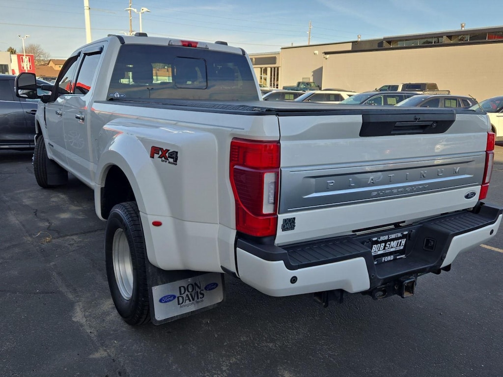 Welcome to Bob Smith Ford! You have made an excellent choice on this 2021 Ford Super Duty F-350 DRW Platinum. Engine: 6.7L 4V OHV Power Stroke V8 Turbo Diesel B20. FX4 Off-Road Package ($400 value). Unique FX4 Off-Road Box Decal. Hill Descent Control. Off-Road Specifically Tuned Shock Absorbers. Transfer Case and Fuel Tank Skid Plates. Order Code 723A. TorqShift 10-Speed Automatic Transmission. 17 Forged Polished Aluminum Wheels. B&O System by Bang & Olufsen. Unique Platinum Leather 40/console/40 Seats. Distance pacing cruise control with traffic stop-go. Adaptive cruise control with traffic stop-go. Forward collision mitigation. Rear camera. Smart device mirroring. Mobile hotspot. Here in the Hardin area, when drivers are searching for the renowned quality and caliber of a reliable Ford vehicle, they know they can come to Bob Smith Ford. We've been your local home for these great vehicles for some time now, and we look forward to continuing to serve Billings, Big Horn and Crow Agency drivers with brand-new and pre-owned vehicles for a long time to come. We're committed to serving our customers in Montana with sales, selection, service, financing, and much more.