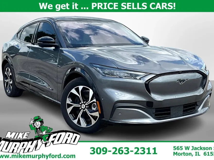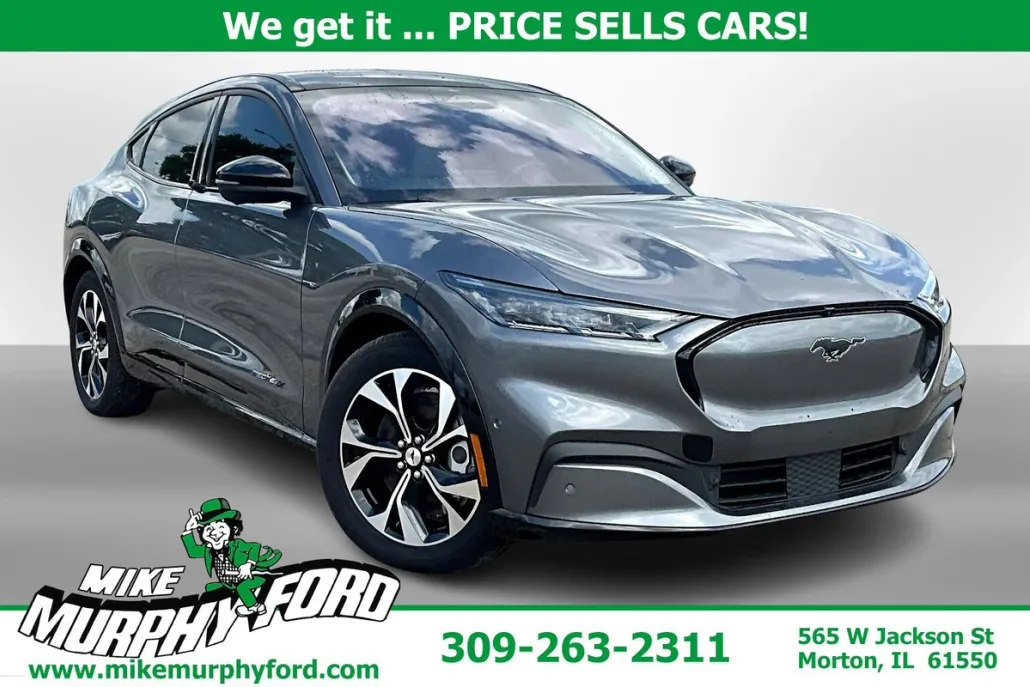 The 2021 Ford Mustang Mach-E Premium is a single-speed automatic dual-electric motor AWD vehicle featuring Apple Car Play, Bluetooth hands-free, Sirius XM, heated seats, leather seats, power seat, panoramic vista roof, rear backup camera, wireless charging pad, SYNC 4A with EVR, phone as a key, Ford Pass Connect, and more. Pricing starts at $27,991 with delivery available.