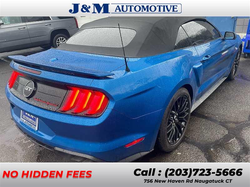 The 2021 Ford Mustang GT Premium Convertible is an iconic American muscle car that delivers thrilling performance and open-air driving excitement, powered by a legendary 5.0L V8 engine producing about 460 horsepower and 420 lb-ft of torque paired with rear-wheel drive for an exhilarating ride. Inside, it offers premium touches like leather-trimmed seating, a large touchscreen with Apple CarPlay and Android Auto, Bluetooth connectivity, a premium sound system, and push-button start, while the power-operated convertible top lets you enjoy the road with the wind in your hair. With bold Mustang styling, powerful V8 performance, and modern technology, this GT Premium Convertible is the perfect blend of muscle, luxury, and pure driving fun. Accident-free history report, included warranty. Financing and extended warranties available! Since after opening our doors in 1987 J&M Automotive has maintained a commitment to our valued customers. With over 600 vehicles on our lot, the choices may seem overwhelming but our staff works hard to offer a low stress, hassle free environment for an ease of purchase for all of our customers. J&M Automotive has a passion to maintain our A+ BBB rating and that definitely shows considering we have been awarded Dealer Rater's "Dealer of the Year" 4 years in a row! We have strong long-term relationships with many major banks and credit unions who allow us to offer financing options for almost any situation. All of our cars are serviced by our 22 talented ASE certified technicians. Each car comes with a standard warranty but we also offer extended warranties to cover up to 5 years and unlimited mileage.