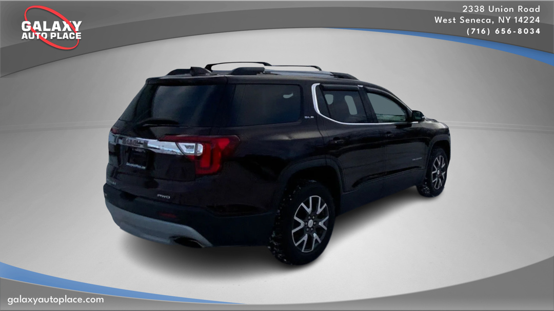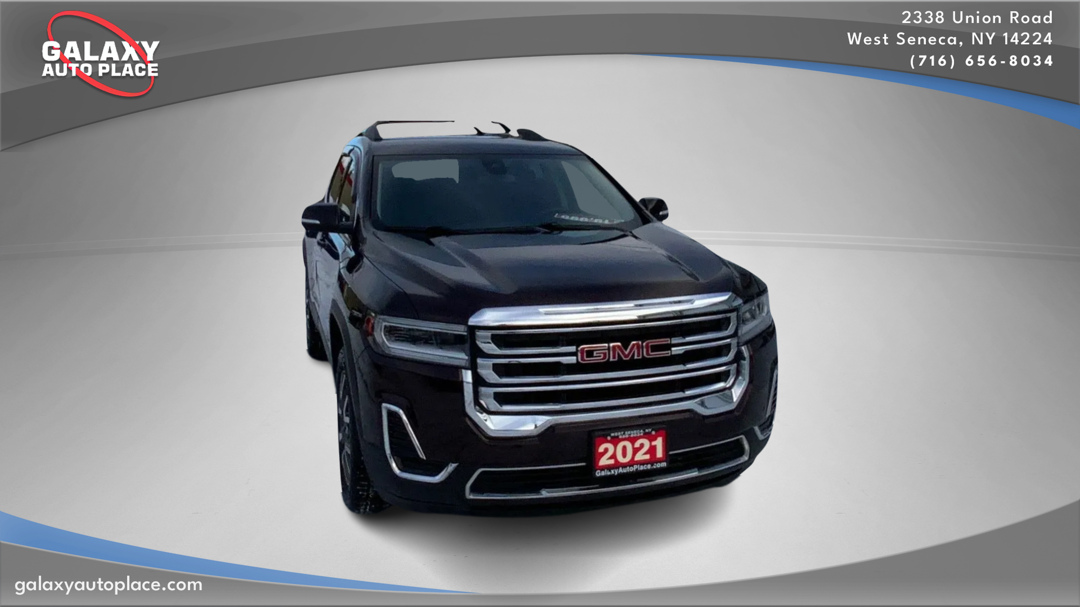 Our versatile one owner 2021 GMC Acadia SLE AWD is comfortably confident in Red Mahogany Metallic! Powered by a 3.6 Liter V6 that offers 310hp connected to a 9 Speed Automatic transmission for efficient capability. You can also enjoy responsive handling in our fantastic All Wheel Drive SUV that sees nearly 26mpg on the highway with a Professional Grade road presence that's hard to ignore. Sleek and contemporary, the design of our Acadia exudes sophisticated style with LED lighting, heated power mirrors, a bold grille, and 18-inch alloy wheels. Inside our SLE, there's room for six with supportive cloth seats plus upscale amenities like a leather-wrapped steering wheel and tri-zone automatic climate control. A wealth of intuitive technologies helps keep you connected, starting with an 8-inch touchscreen, WiFi compatibility, Android Auto, Apple CarPlay, Bluetooth, and a six-speaker sound system with available satellite radio for your listening enjoyment. Ample cargo space brings even more utility to our Acadia! Drive safely, knowing GMC offers advanced features such as an HD backup camera, lane-change alert, blind-zone alert, rear parking sensors, rear cross-traffic alert, and even a system that reminds the driver to check the backseats for passengers before leaving. Go your own way in our Acadia every day! Save this Page and Call for Availability. We Know You Will Enjoy Your Galaxy Test Drive!