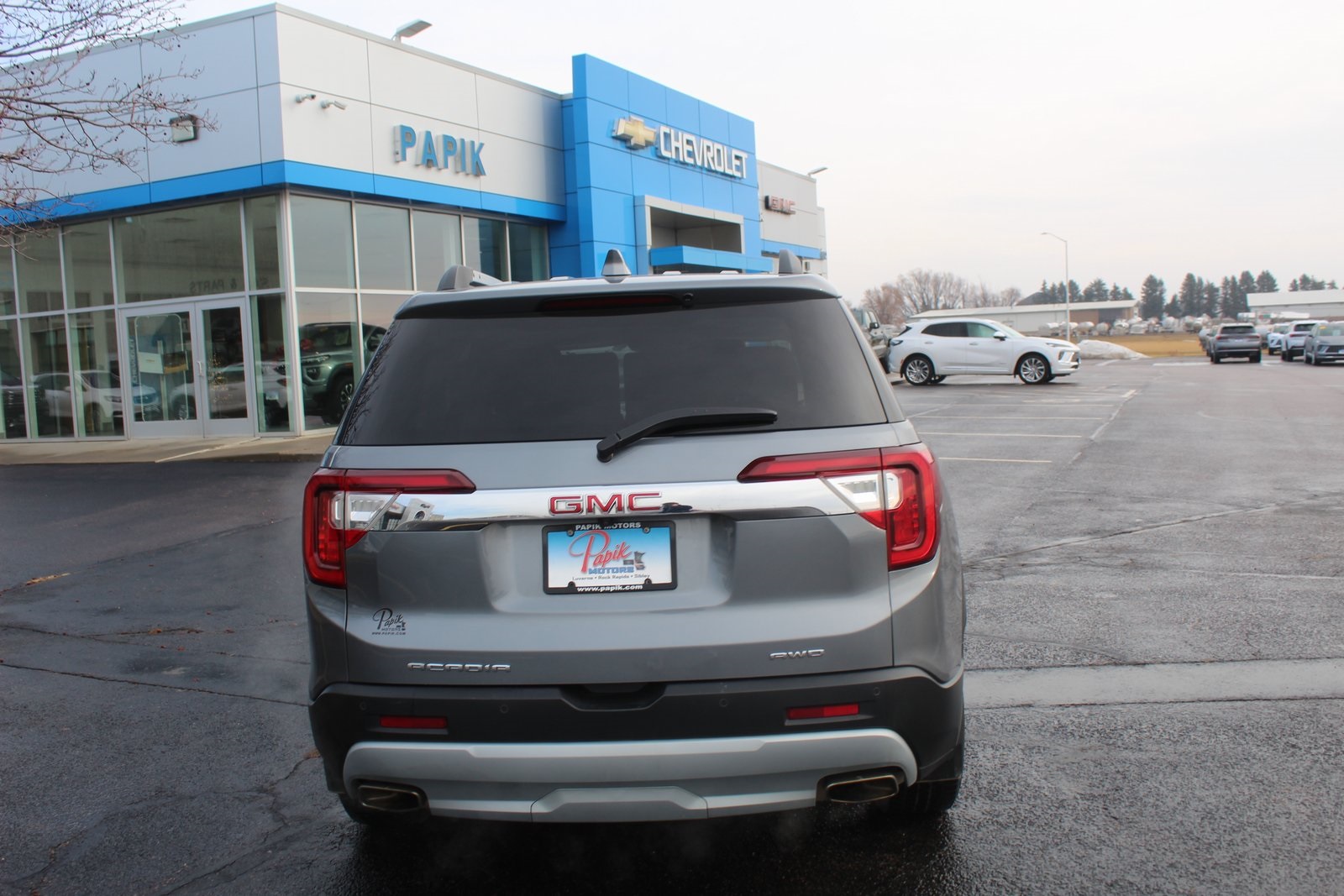 Papik Motors has been serving the local community for over 30 years. Clean CARFAX. Clean car. Satin Steel Metallic 2021 GMC Acadia SLT AWD 9-Speed Automatic 3.6L V6 SIDI. Odometer is 26066 miles below market average! 19/26 City/Highway MPG.