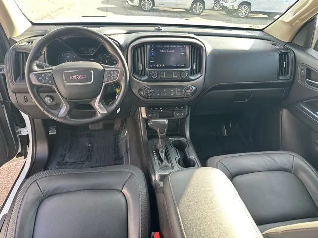 This used 2021 GMC Canyon AT4 with Leather offers a compelling combination of rugged capability and refined comfort. With just 46,699 miles on the clock, this Summit White pickup is ready to tackle both work and play, featuring a powerful 3.6L V6 engine that delivers 308 horsepower and 275 lb-ft of torque. Its 8-speed automatic transmission and 4WD drive train ensure confident handling across diverse terrains. Inside, the jet black and Kalahari interior provides a luxurious feel, complemented by heated seats and a premium audio system. Modern connectivity features such as Apple CarPlay, Bluetooth, satellite radio, and a WiFi hotspot keep you seamlessly connected on the go. The truck also includes practical amenities like a backup camera, wireless phone charging, fog lights, and a tow package, making it a versatile choice for those seeking both utility and comfort. Designed for drivers who demand safety and advanced technology, this used GMC Canyon comes equipped with essential security features including rear parking sensors, ABS for confident braking, and power door locks with anti-lockout and auto-locking functions. It also offers a programmable safety key and off-road driving assist with hill descent control, enhancing safety during adventurous outings. With these features, you can navigate challenging terrains with greater peace of mind.