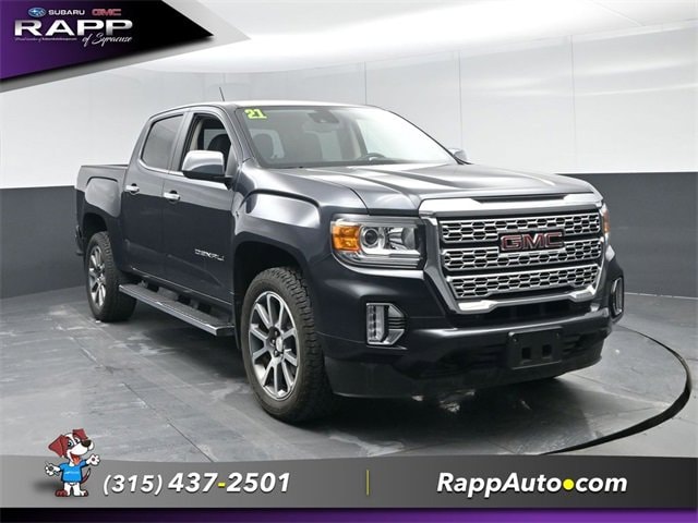 Hunter Metallic 2021 GMC Canyon Denali 4WD 8-Speed Automatic V6. Odometer is 5728 miles below market average! This vehicle may or may not have an open safety recall. Please visit https://vinrcl.safercar.gov/vin/ to find out more information on recalls pertaining to this vehicle. Fox Subaru is dedicated to your satisfaction before, during, and after your purchase. We'll go the extra mile to take care of you.