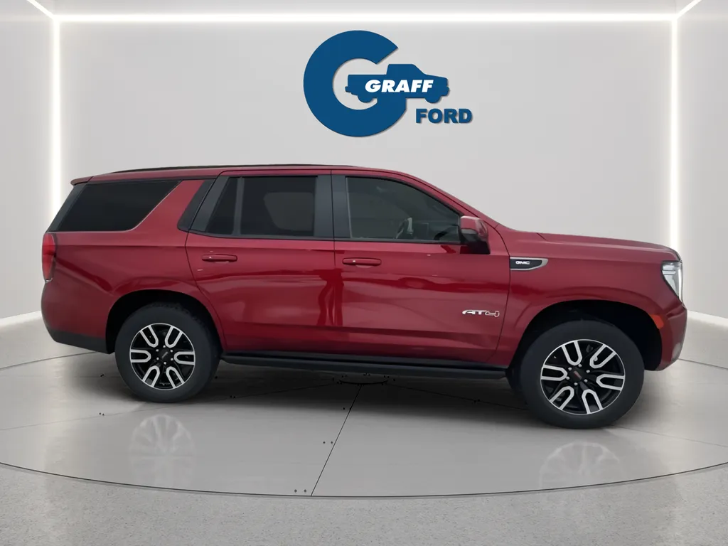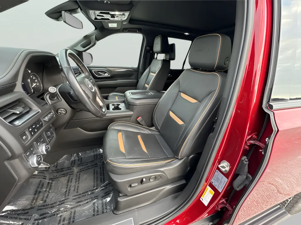 This used 2021 GMC Yukon AT4 is a commanding presence on the road, combining rugged capability with premium comfort. Finished in striking Cayenne Red Tintcoat, this SUV offers an eye-catching exterior that complements its sophisticated Jet Black interior. With 93,328 miles on the clock, it has been well maintained and is ready to deliver a powerful driving experience. Equipped with a 5.3-liter V8 engine producing 355 horsepower and 383 lb-ft of torque, paired with a 10-speed automatic transmission and full-time 4WD, this Yukon is built for both on-road comfort and off-road adventures. Key features such as Apple CarPlay, a premium audio system, heated seats, a sunroof, and navigation make every journey enjoyable, while safety technologies like blind spot monitoring, collision warning, and lane keep assist provide peace of mind. Whether you're hauling family or gear, this used Yukon AT4 offers versatility with its spacious third-row seating and towing capacity, thanks to the included tow package. Its hands-free liftgate, wireless hotspot, Bluetooth connectivity, and rear A/C ensure convenience for all passengers. The SUV's robust construction and advanced features make it a dependable choice for those seeking a capable and comfortable vehicle. Despite its used status, this Yukon remains a compelling option for drivers demanding luxury, utility, and reliability in a full-sized SUV.