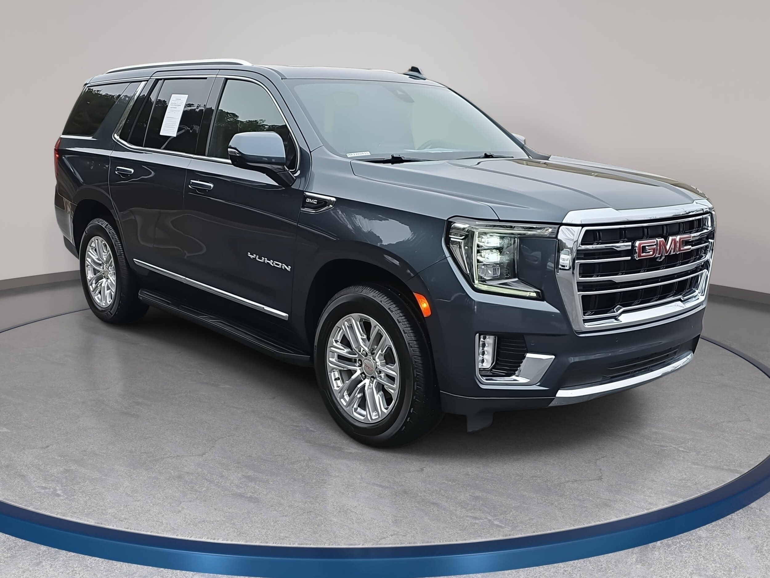 Dark Sky Metallic 2021 GMC Yukon SLT 4WD 10-Speed Automatic with Overdrive EcoTec3 5.3L V8 as is car, local trade in, owned by dealer, leather, heated seats, sunroof, 4-wheel drive, smart key with push button start, Apple CarPlay & Android Auto, must see to appreciate! AS-IS Leith Toyota is selling this vehicle as is with no warranty. We have done a North Carolina State Inspection and fluid check only. No other mechanical work has been done to this vehicle. We recommend that you get this vehicle checked out by a technician of your choice and at your expense before purchase. At Leith Toyota, our goal is to ensure that all of our customers are completely satisfied. Our team consists of true professionals who are dedicated to our customers. We challenge ourselves every day with standards of excellence to maintain customers for life. We take great pride being one of the very best in customer service and satisfaction, and continually strive to improve upon our performance.