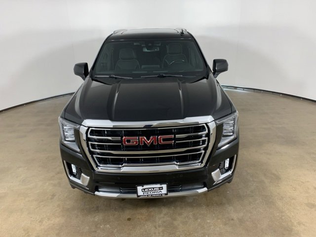 Onyx Black 2021 GMC Yukon SLT 4WD with Jet Black perforated leather interior - available now at Lexus of Peoria in Peoria, IL. This Yukon SLT delivers full-size SUV capability, powerful V8 performance, and premium comfort in a refined, family-ready package. Equipped with the SLT Luxury Plus Package and advanced trailering technology, it offers impressive towing confidence, modern connectivity, and upscale features throughout the spacious three-row cabin. Lexus of Peoria provides a premium, customer-focused buying experience with professional service, complimentary car washes, available service loaners, and experienced technicians dedicated to your satisfaction.