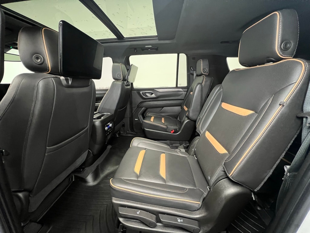 GMC Yukon XL Clean CARFAX, 12-Way Power Seat Adjusters, 2 Presets For Outside Rearview Mirrors, 3rd Row 60/40 Power-Folding Split-Bench Seat, 3rd row seats: split-bench, 4-Wheel Disc Brakes, 9 Speakers, ABS brakes, Adaptive suspension, Air Conditioning, Alloy wheels, AM/FM radio: SiriusXM with 360L, Apple CarPlay/Android Auto, Auto High-beam Headlights, Auto-dimming door mirrors, Auto-dimming Rear-View mirror, Auto-leveling suspension, Automatic Emergency Braking, Automatic temperature control, Black Roof-Mounted Luggage Rack Side Rails, Bose 9-Speaker Stereo Audio System Feature, Brake assist, Bright Front & Rear Door Sill Plates, Bumpers: body-color, Compass, Delay-off headlights, Driver door bin, Driver vanity mirror, Dual front impact airbags, Dual front side impact airbags, Electronic Stability Control, Emergency communication system: OnStar and GMC connected services capable, Following Distance Indicator, Forward Collision Alert, Four wheel independent suspension, Front anti-roll bar, Front Bucket Seats, Front Center Armrest, Front dual zone A/C, Front fog lights, Front High-Approach Angle Fascia, Front Pedestrian Braking, Front reading lights, Fully automatic headlights, Garage door transmitter, Hands-Free Power Programmable Rear Liftgate, HD Radio, HD Surround Vision, Heated & Ventilated Driver & Front Passenger Seats, Heated 2nd Row Outboard Position Seats, Heated Automatic Steering Wheel, Heated door mirrors, Heated Driver & Front Passenger Seats, Heated front seats, Heated rear seats, Heated steering wheel, Heavy-Duty Air Filter, Hill Descent Control, Illuminated entry, Inside Rear-View Auto-Dimming Mirror, IntelliBeam Automatic High Beam On/Off, Lane Change Alert w/Side Blind Zone Alert warning, Lane Keep Assist w/Lane Departure Warning active. Here you'll enjoy working with one person from start to finish. It's easy. It's transparent. It's pressure-free! Used Truck Inventory Used SUV Inventory Used Car Inventory All New Inventory Get Approved Latest New Vehicle Specials Used Vehicle Specials. Peace of mind. Vehicle history report. Title information. Odometer readings. Accident data (if applicable). Service history. Vehicle usage. Recall information (if applicable). Warranty status. Free CarFax report. A name you can trust.