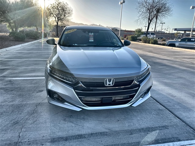 This just in!! Local trade!! AZ highway honey!! FWD!! Turbocharged!! Lunar Silver!! Heated leather!! Sporty special edition!! Well maintained!! This 2021 Honda Accord Sport Special Edition in Lunar Silver Metallic presents a modern and athletic design paired with a comfortable, driver-focused interior. Its sleek exterior is complemented by bold styling cues, while the cabin features black heated leather seats that provide both support and refinement for daily driving. Powered by a 1.5L turbocharged VTEC engine, this Accord delivers an impressive balance of responsive performance and excellent fuel efficiency, making it an ideal choice for long highway commutes. Inside, you'll find thoughtful details that enhance every drive, from a well-laid-out cockpit to intuitive technology designed to keep you connected and in control. The Sport Special Edition trim offers an elevated sense of convenience and comfort, while maintaining the dependable quality Honda is known for. With its confident ride, smooth handling, and a reputation for reliability, this Accord is built to make every mile enjoyable and worry-free.