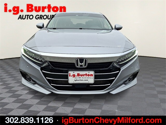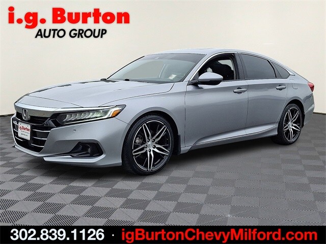 See it at the Milford Chevy location, Bluetooth hands free phone, Backup Camera, Leather seating, Leather, Navigation System. Recent Arrival! 2021 Honda Accord Touring 2.0T. CARFAX One-Owner. Since 1908, i.g. Burton Auto Group has served Delmarva and its surrounding communities with outstanding sales and service as its longest-standing family-owned and operated dealer group. See why we proudly say, "Nobody Beats a Burton Deal! NOBODY!"